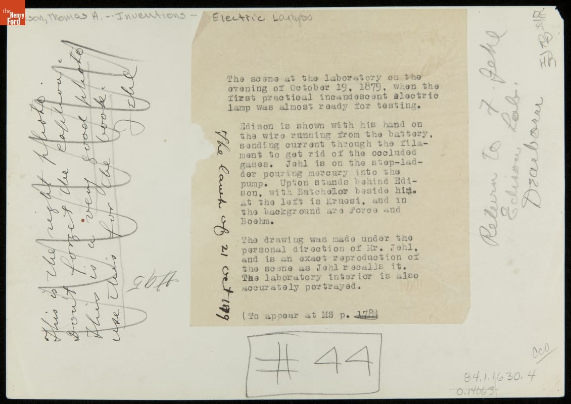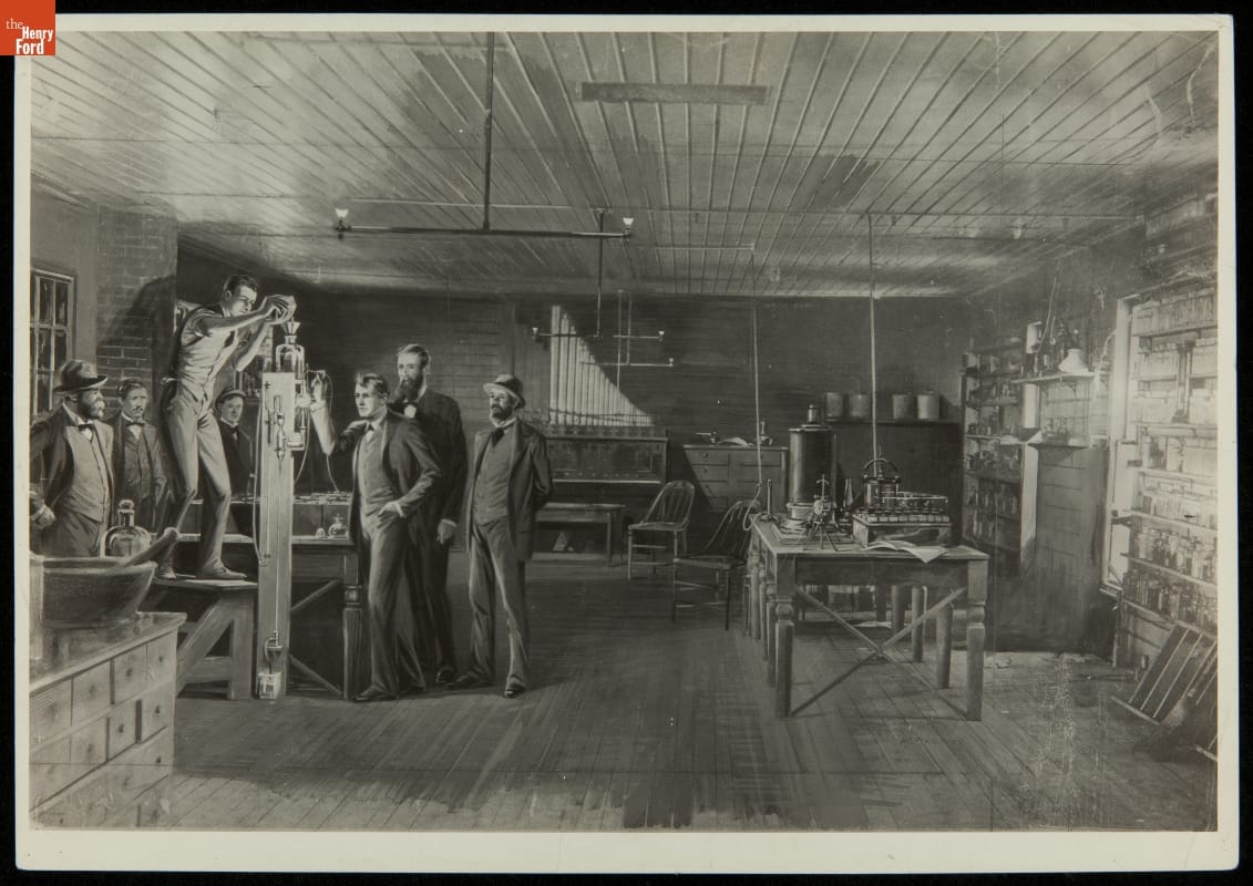 Illustration, Preparing the First Practical Incandescent Lamp for Testing at Edison's Menlo Park Laboratory, October 19, 1879