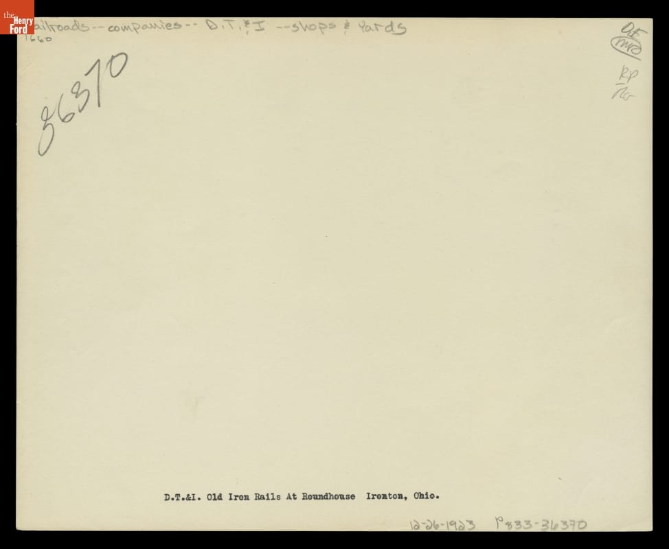 Old Iron Rails at Detroit, Toledo & Ironton Railroad Roundhouse, Ironton, Ohio, 1923