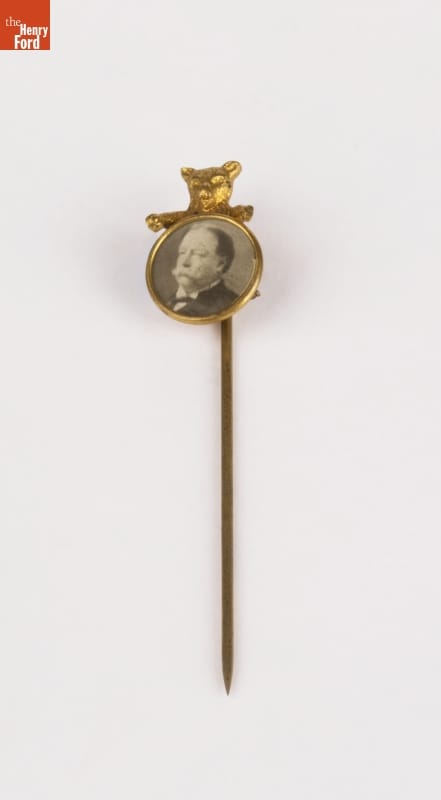William Howard Taft was President Theodore Roosevelt's hand-picked successor for the 1908 presidential election--as implied by the open-armed Teddy Bear on this campaign pin. Although Roosevelt's backing helped Taft win the election, Taft became increasingly conservative and lacked Roosevelt's energy, personal magnetism, and public support. Roosevelt's disenchantment with Taft encouraged him to oppose him in the 1912 election.