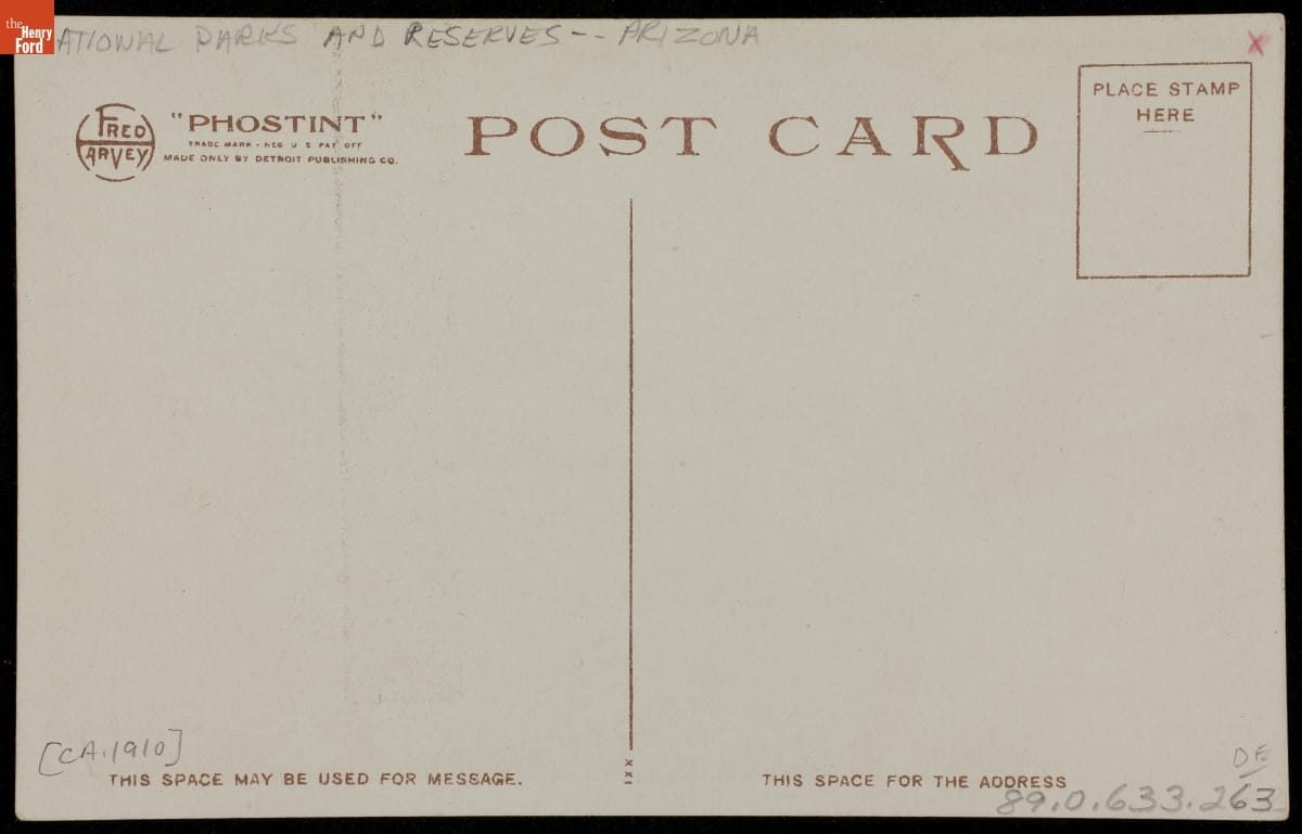Made by the Detroit Publishing Co., Detroit, Michigan for Fred Harvey's company.