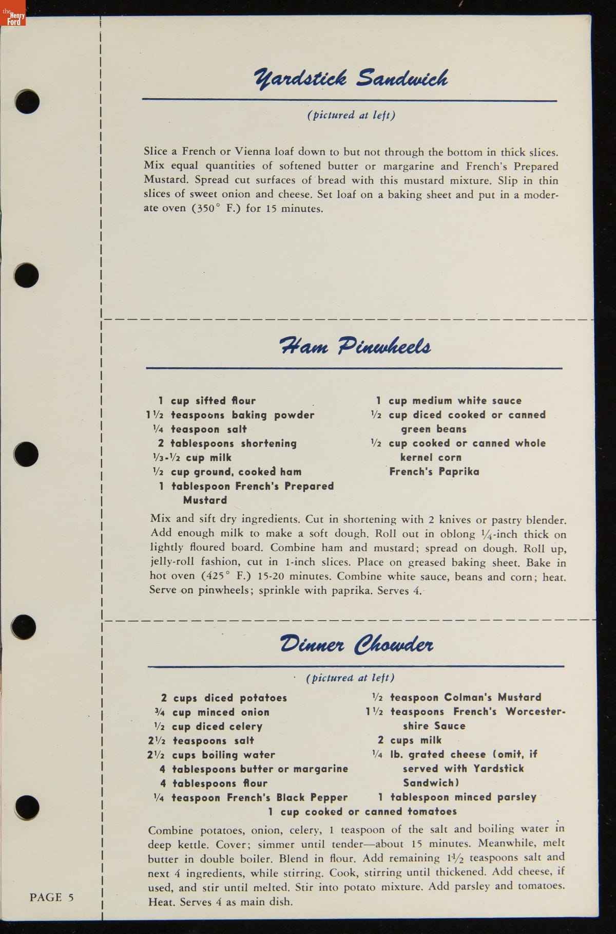 Following the debut of its Cream Salad Mustard in 1904, the R.T. French Company experienced success in the processed food industry. As the French's brand expanded to include additional condiments and food items, recipe booklets provided homemakers with creative uses for the company's products. This recipe booklet from about 1955 features recipes for a variety of meals utilizing French's products.