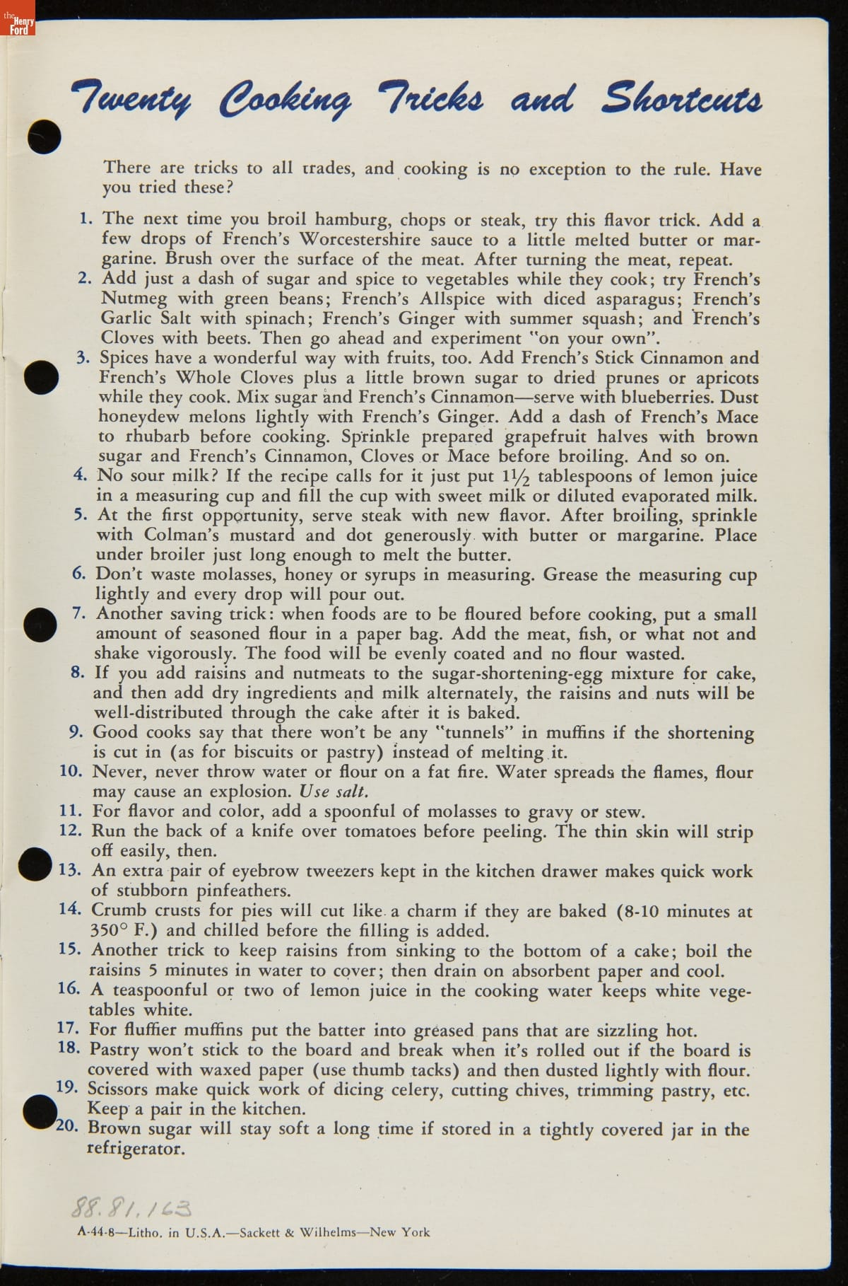 Recipe Booklet, "French's Company Meal Time Magic," circa 1955