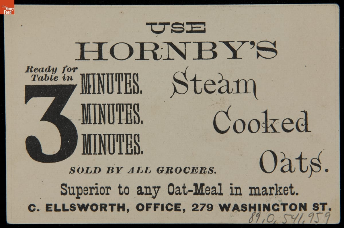Trade Card for Hornby's Steam Cooked Oats, 1870-1900