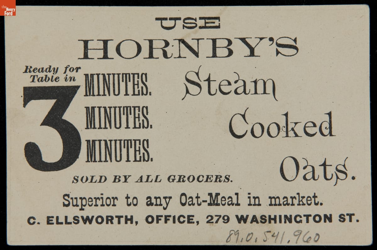 Trade Card for Hornby's Steam Cooked Oats, 1870-1900