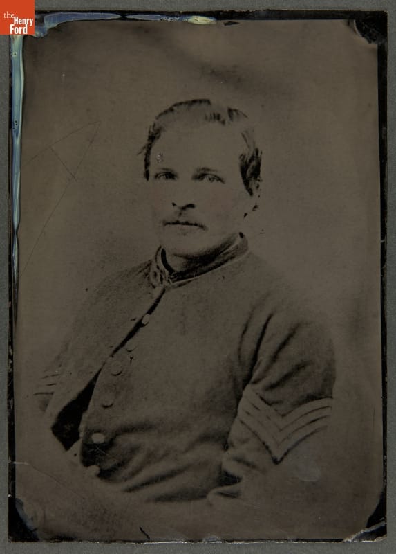 Barney Litogot of Taylor, Michigan, served with the 24th Michigan Volunteer Infantry -- part of the famed "Iron Brigade" -- during the Civil War. Twice wounded, Litogot fought with his unit in many of the Civil War's costliest battles including Fredericksburg, Gettysburg, the Wilderness, Spotsylvania, and Cold Harbor. Litogot was the brother of Henry Ford's mother, Mary. Their brother John died at Fredericksburg in 1862.
