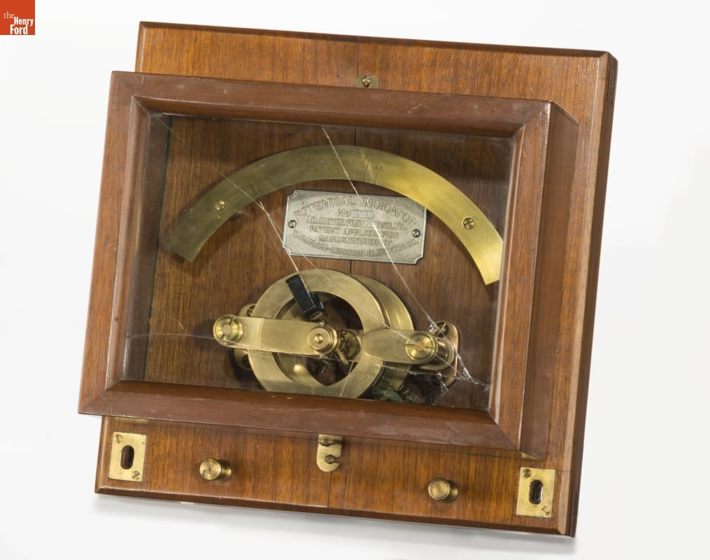 POTENTIAL INDICATOR/ NO 282/ ADJUSTED FOR 54 VOLTS/ PATENT APPLIED FOR/ MANUFACTURED BY/ THOMSON-HOUSTON ELECTRIC CO./