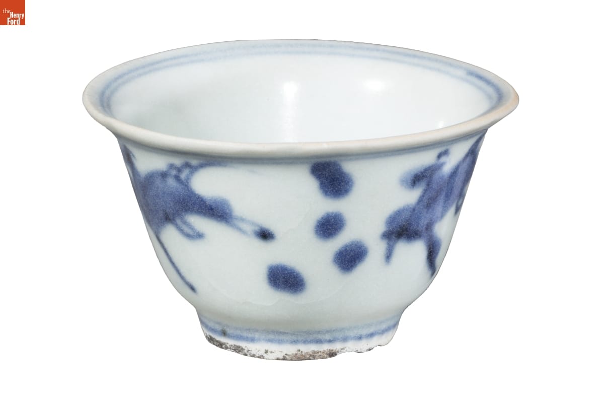 Wealthy 17th-century Europeans craved Chinese porcelains. The clay of these export wares contains kaolin. When fired, the body of the clay and glaze fused into a glass-like form that resisted chipping and breaking--holding up to everyday use, which amazed Europeans. This teacup never made it to the table; it was found in a shipwreck on its way to Europe--a beautiful and rugged survivor.