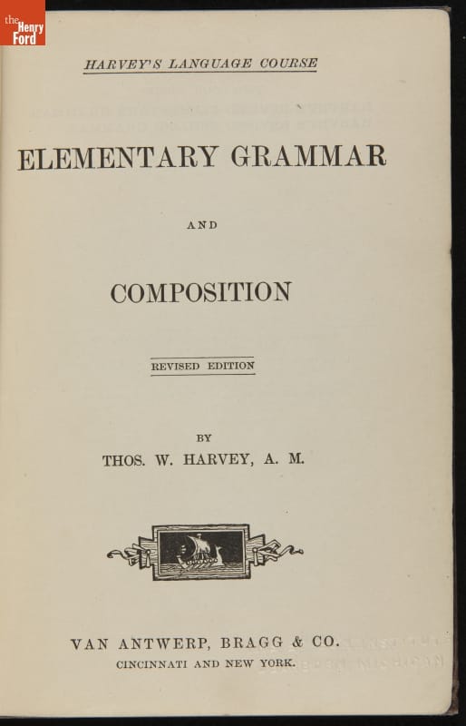 Book Used by Katharine Wright, "Harvey's Elementary Grammar and Composition," 1880