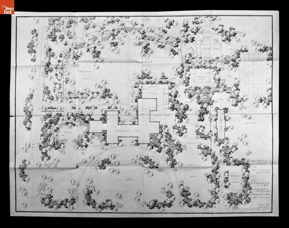 By the mid-1930s, the Dearborn Inn, a popular luxury hotel, required additional accommodations to service travelers and visitors to the Edison Institute (later renamed The Henry Ford). The L.G. Treadway Service Corporation consulted with Edsel Ford about proposed upgrades that included a swimming pool, pool house, landscaping, and a "Colonial Village" of guest houses (replicas of homes famous in American history).