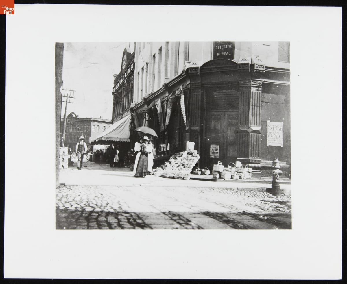 Produce Stand near Cadillac Meat Market at Cadillac Square, Detroit, Michigan, circa 1895