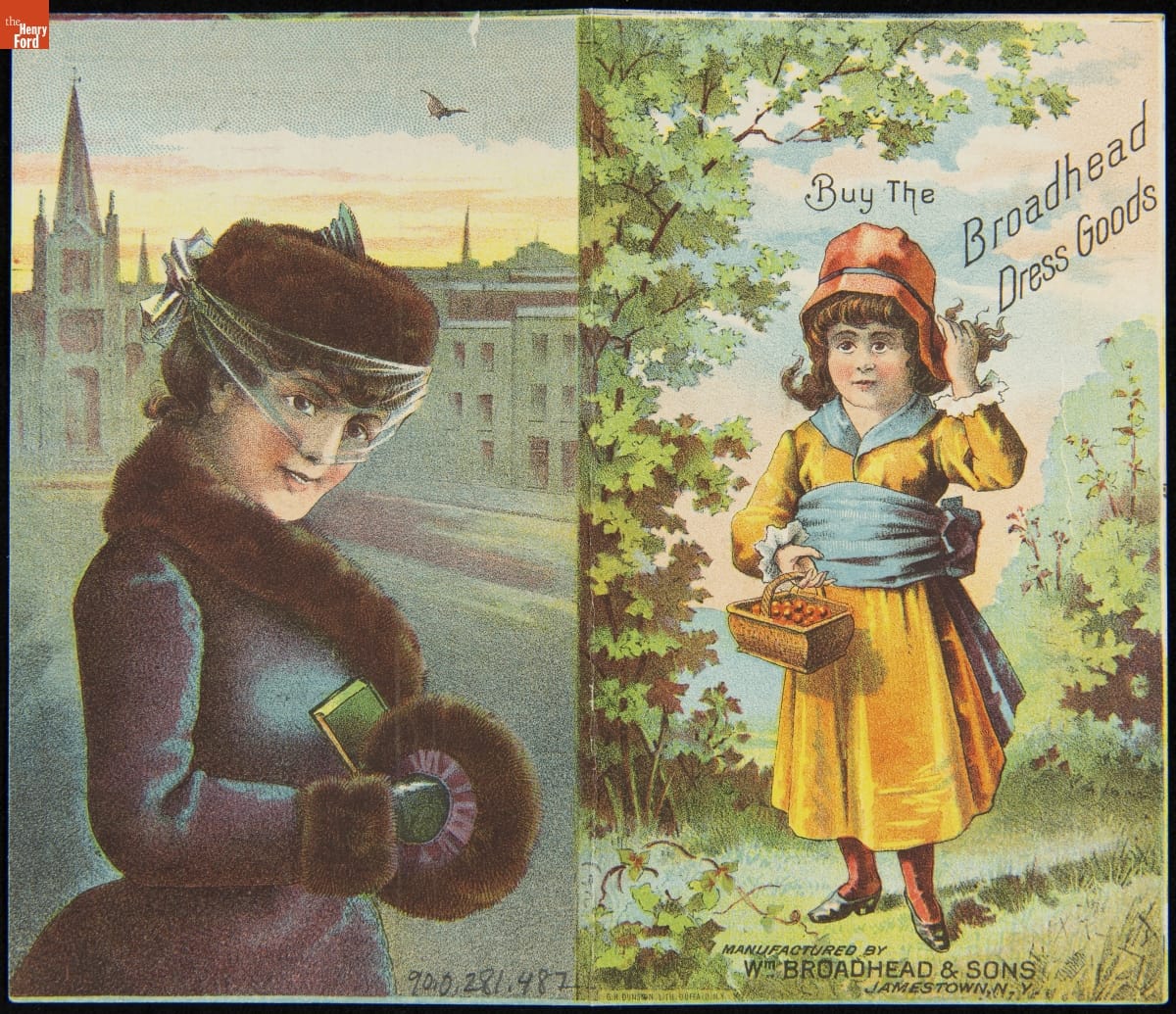 Trade Card for Dress Goods, Broadhead Worsted Mills, 1880-1900