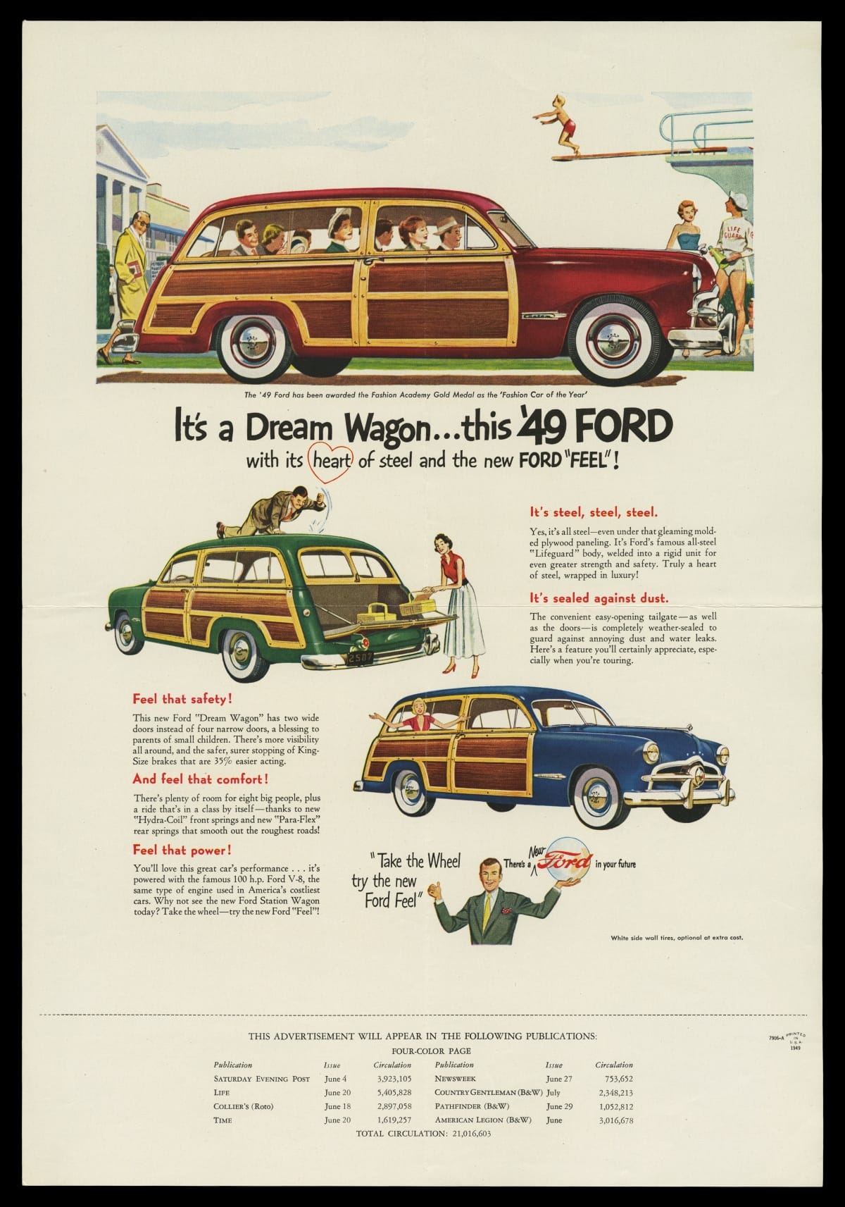 Advertisement for the 1949 Ford Station Wagon, "It's a Dream Wagon...this '49 Ford!"