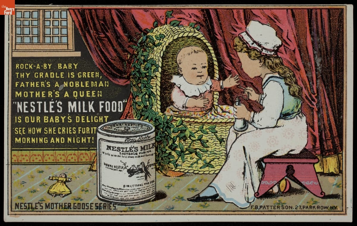 ROCK-A-BY BABY / THY CRADLE IS GREEN, / FATHER'S A NOBLEMAN / MOTHER'S A QUEEN / NESTLE'S MILK FOOD / ... NESTLE MOTHER GOOSE SERIES