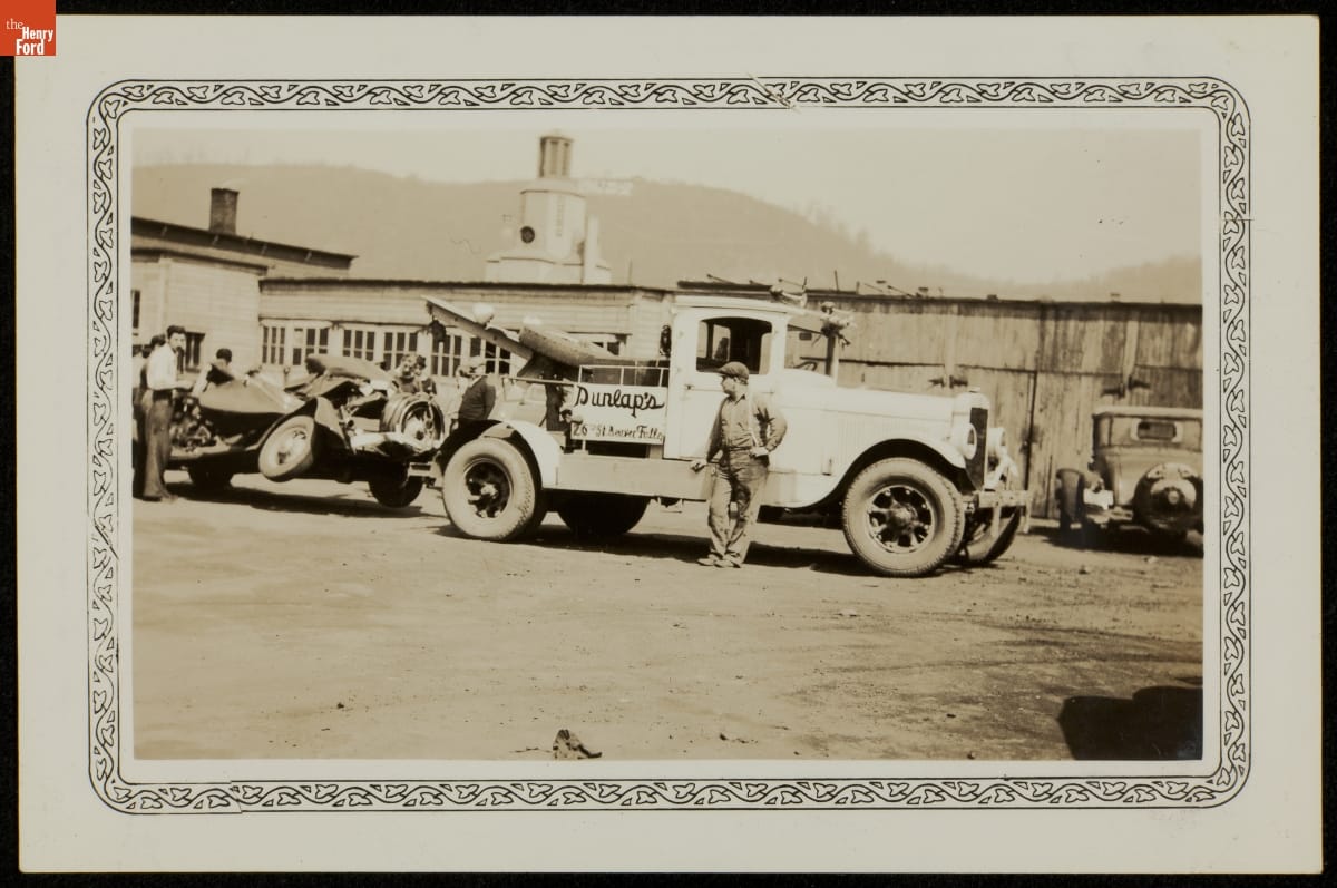 Dunlap's Tow Truck with Wrecked Automobile, Pittsburgh, Pennsylvania, circa 1930