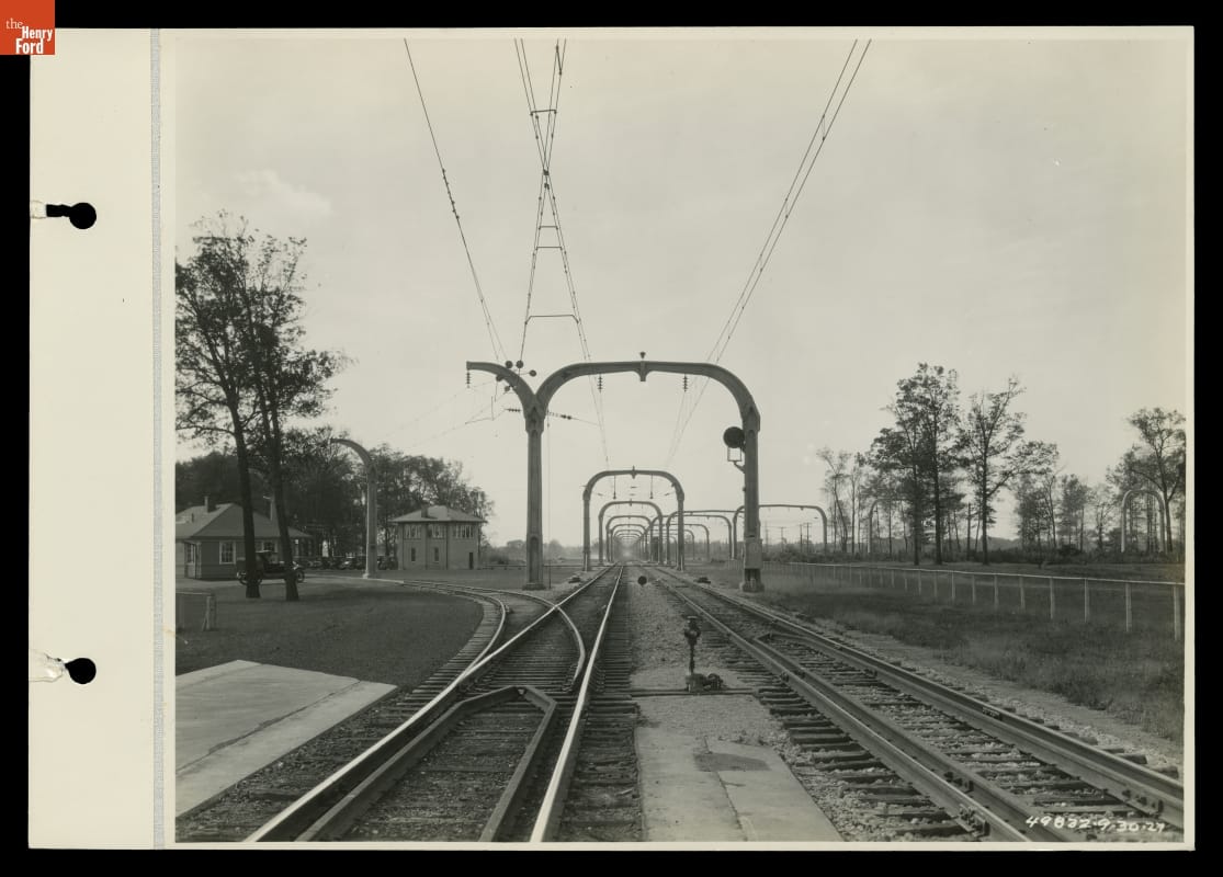 Under Henry Ford's ownership, the Detroit, Toledo & Ironton Railroad built a 15-mile branch from Flat Rock, Michigan, to Ford's Rouge plant in Dearborn. Electricity generated at the Rouge powered the line via overhead wires. The Rouge also cast the concrete arches supporting the wires. Electric operation ended in 1930, but many of the arches -- expensive to remove -- remained in place.