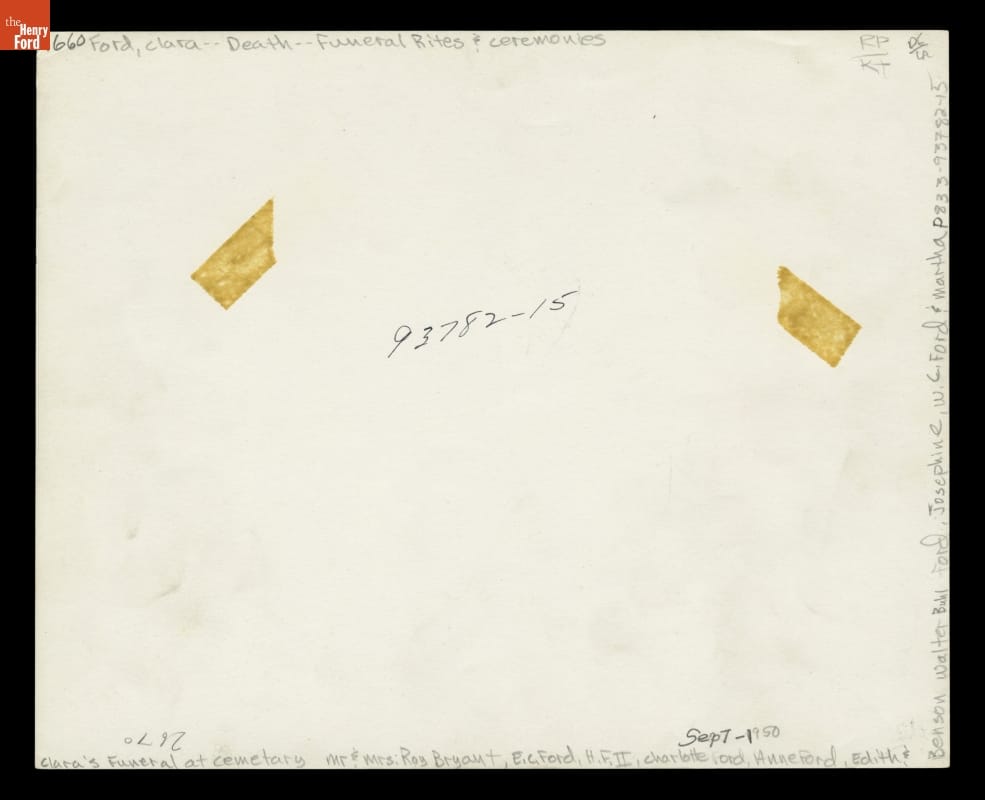 Family at Clara Bryant Ford's Burial, Ford Cemetery, Detroit, Michigan, 1950