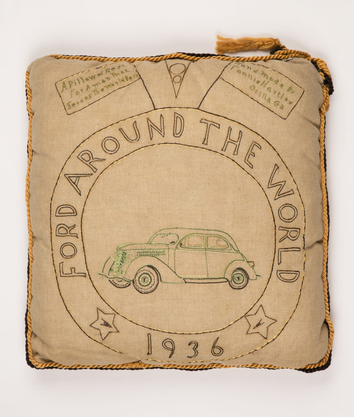 Embroidered Pillow, Gift to Henry Ford, 1936