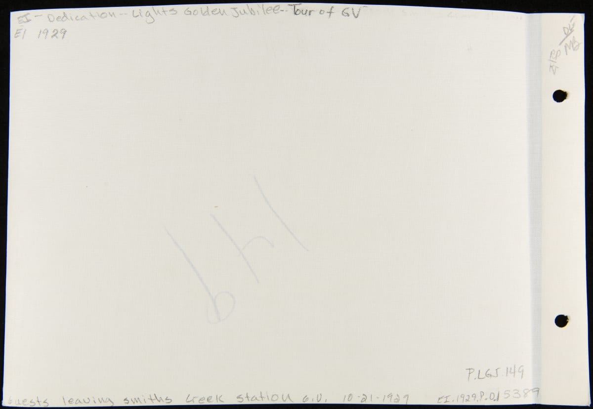 On October 21, 1929, Henry Ford hosted an event, Light's Golden Jubilee, which celebrated the 50th anniversary of Thomas Edison's invention of a practical incandescent lamp. After a morning reception, guests could view the historical buildings Ford had gathered for Greenfield Village, his outdoor museum. The day was a rainy mess, but this did not dampen his guests' enthusiasm as they went from building to building.