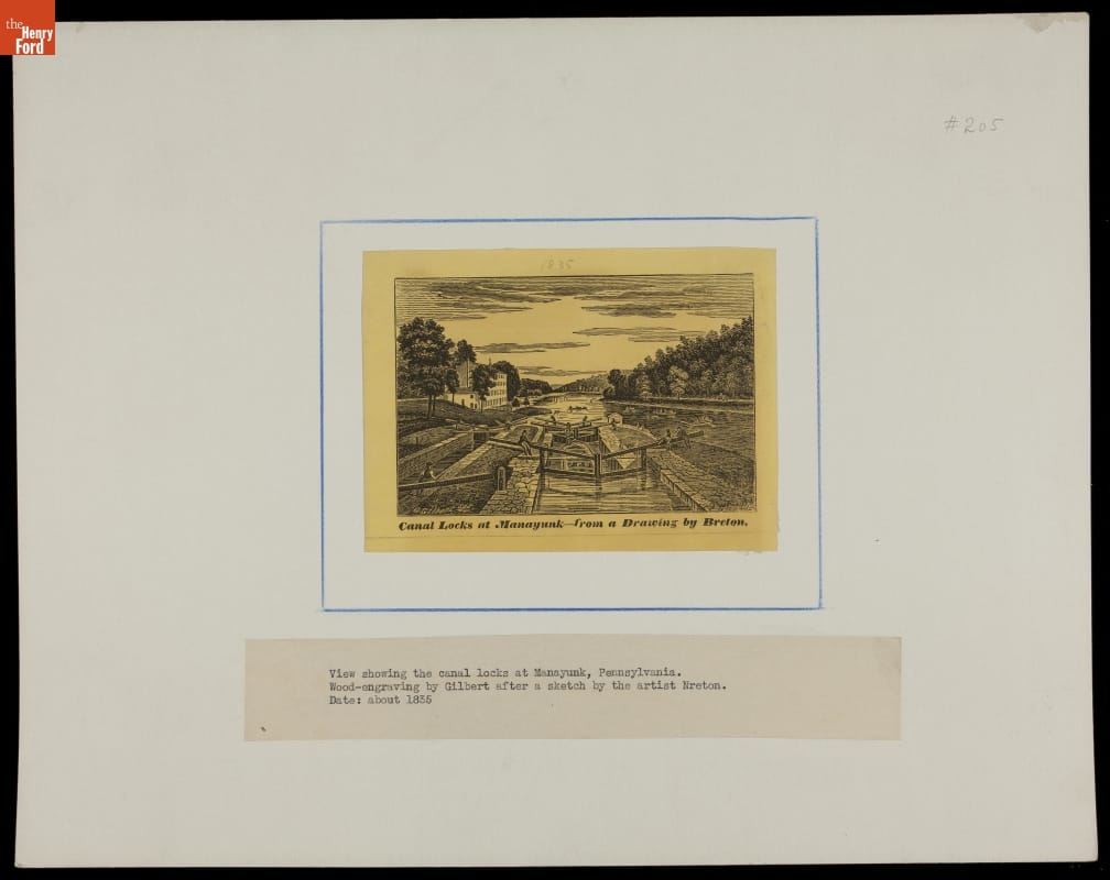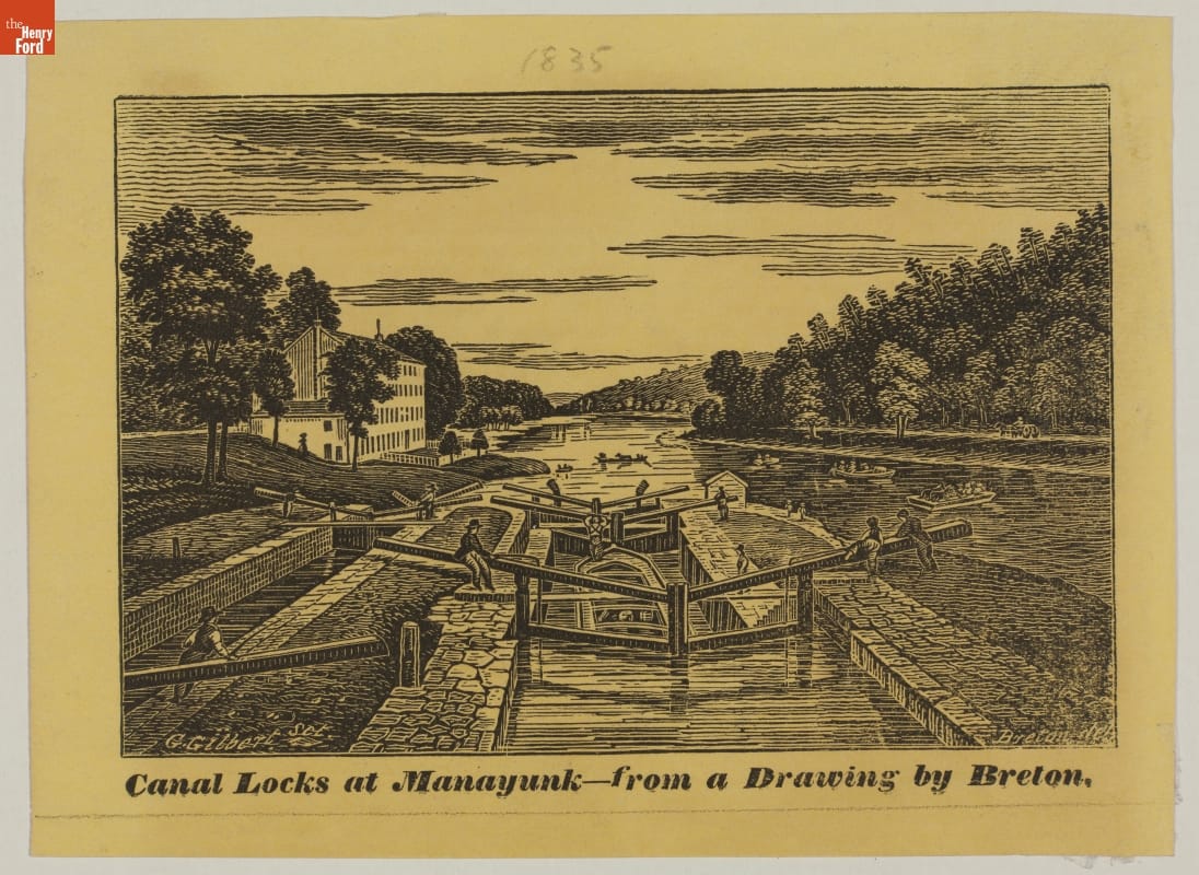 Wood Engraving, "Canal Locks at Manayunk-from a Drawing by Breton," circa 1835