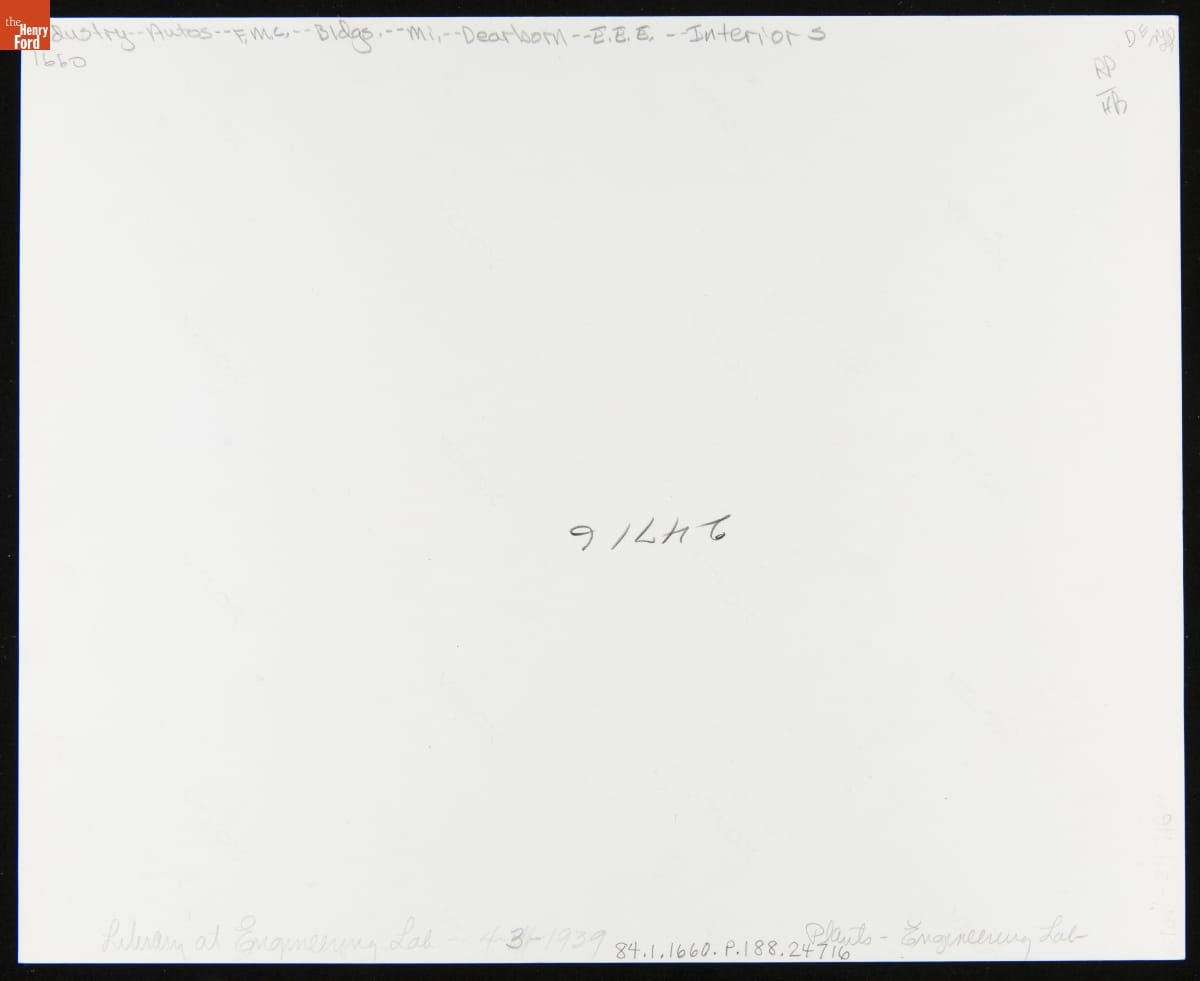 Library in the Ford Motor Company Engineering Laboratory, Dearborn, Michigan, April 1939