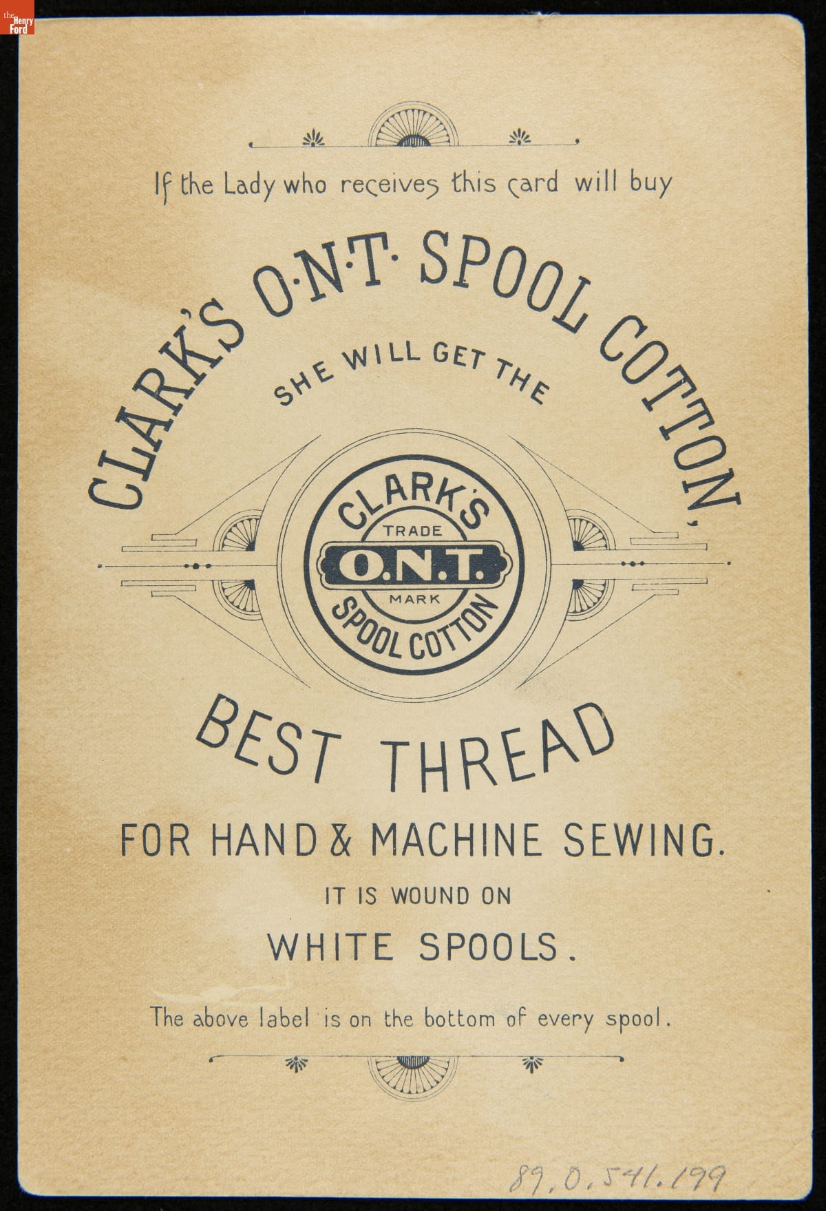 Trade Card for Clark's O.N.T. Spool Cotton, Clark's O.N.T., 1880-1890