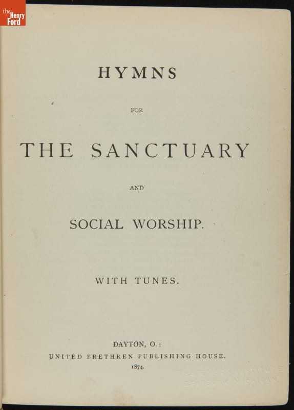 Book Used by Milton Wright, "Hymns for the Sanctuary," 1874