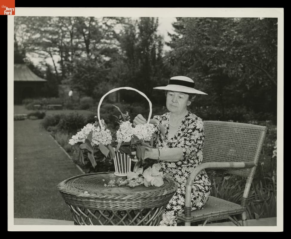Clara Ford Arranging Flowers from Her Garden, Fair Lane, Dearborn, Michigan, 1939