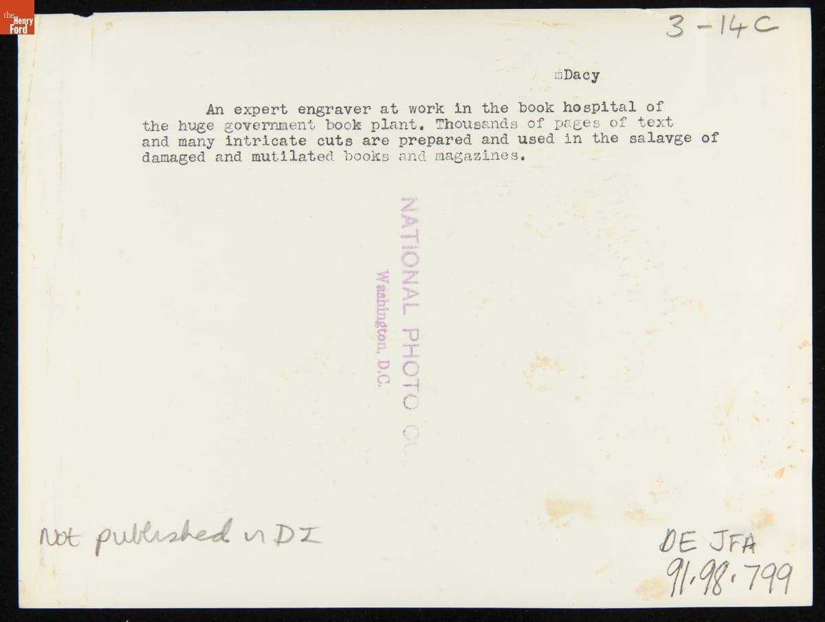 Expert Engraver at Work in the "Book Hospital" of the Congressional Library, 1909-1920