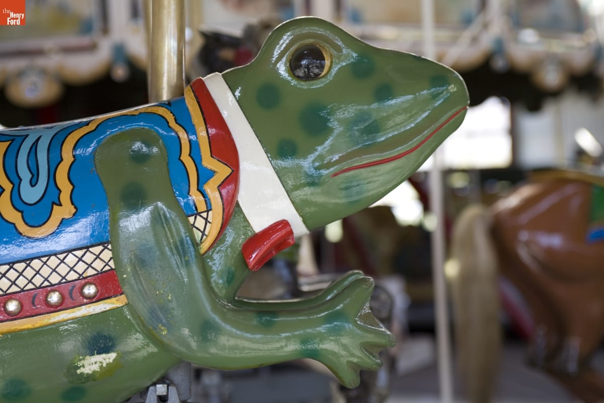 In the early 20th century, amusement park goers dressed in their Sunday best climbed aboard colorful, hand-carved animals to enjoy a carousel ride. Horses were most common, but riders could choose from more exotic creatures found on some carousels. Herschell-Spillman made this whimsical frog -- the only carousel manufacturer to do so. It's the only American carousel animal you'll see wearing human clothing.
