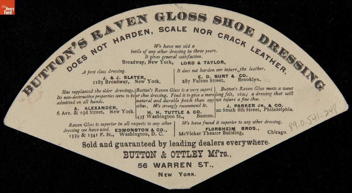 Button's Raven Gloss Shoe Dressing Trade Card, circa 1885