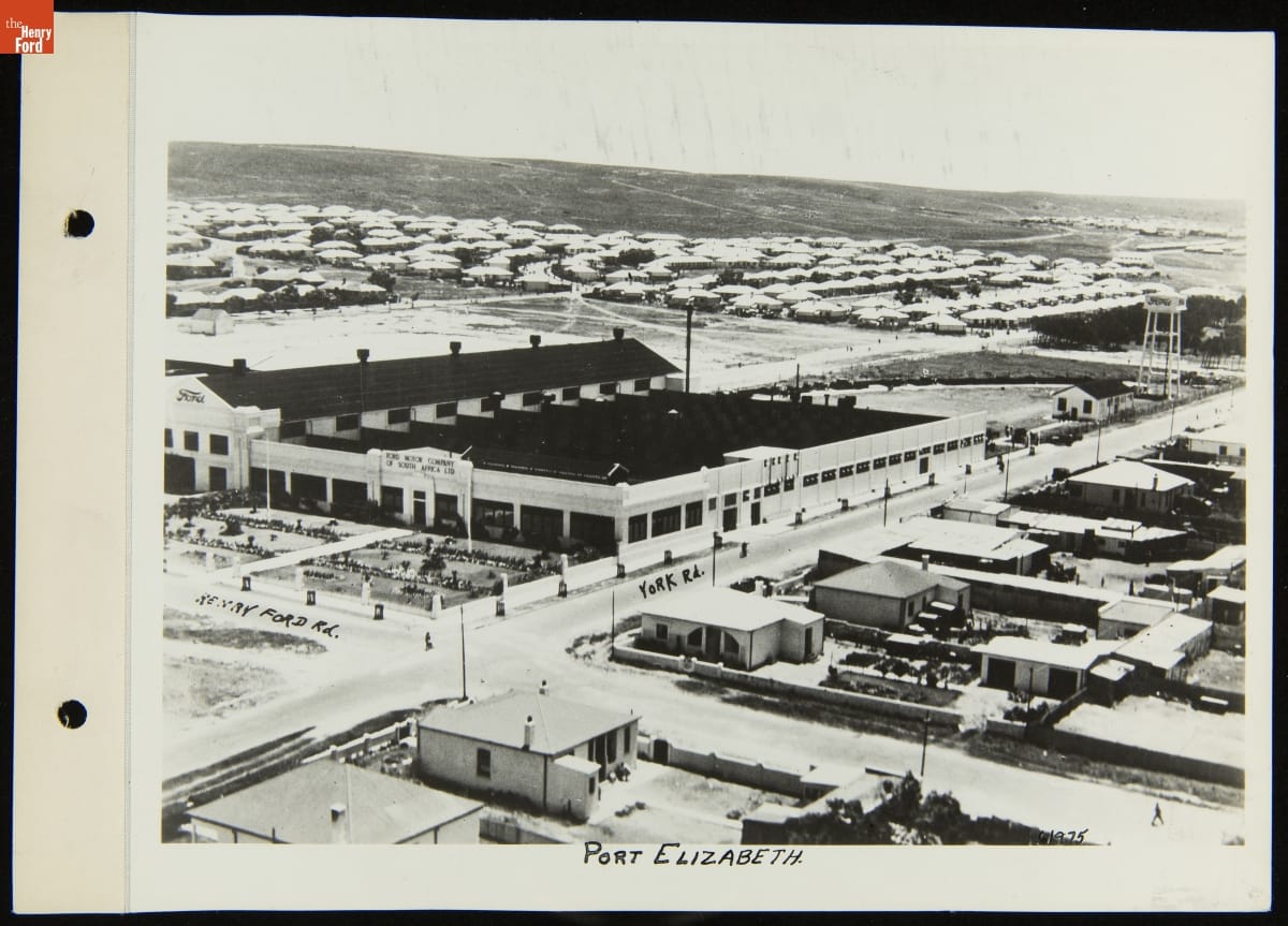 Ford Motor Company operated sales and service branches, as well as assembly plants, in cities around the world. Ford Motor Company of Southern Africa was established in 1923, and assembly of Model T cars started in Gqeberha (formerly Port Elizabeth), South Africa, the following year. This photo shows Ford's facility there as it appeared in 1935.