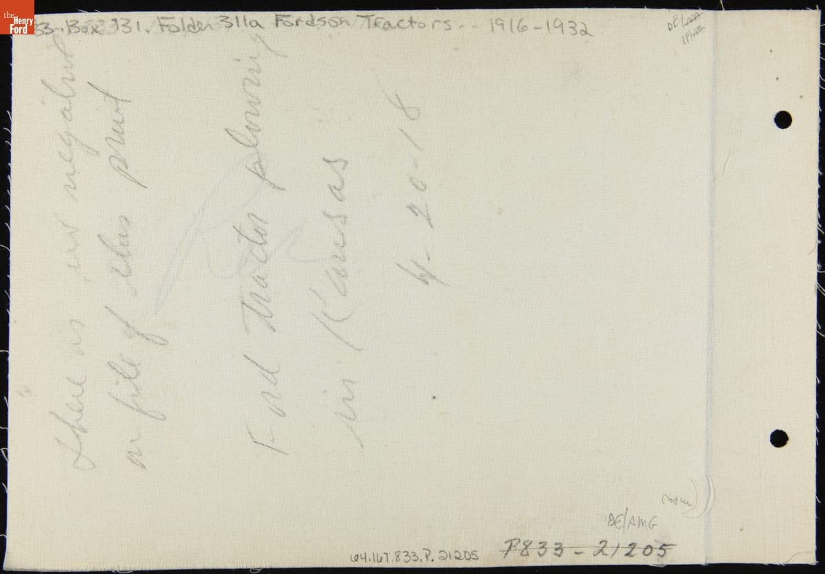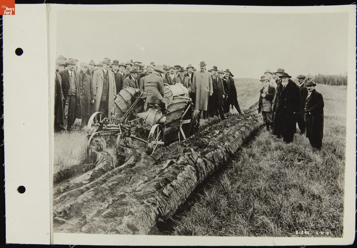 Spectators Watch a Fordson Tractor Demonstration, Plowing a Field in Kansas, February 6, 1918