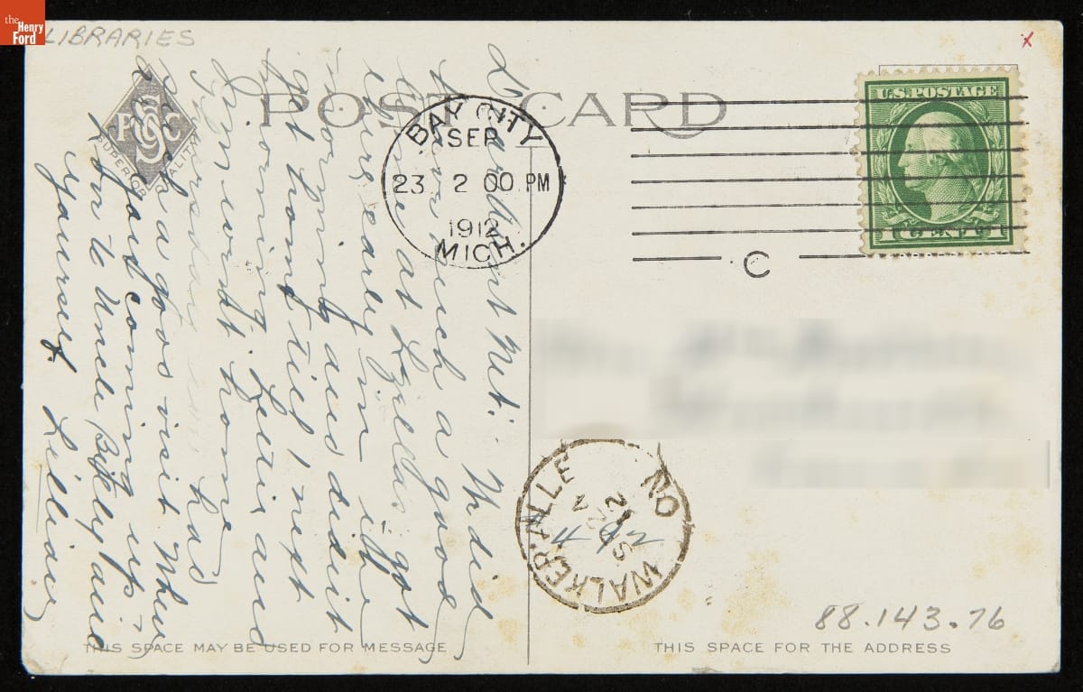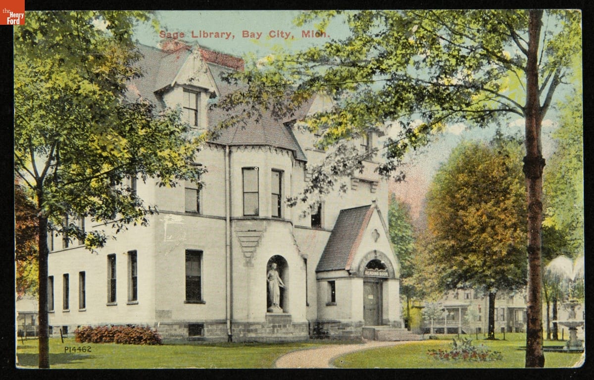Postcard, "Sage Library, Bay City, MI," circa 1912