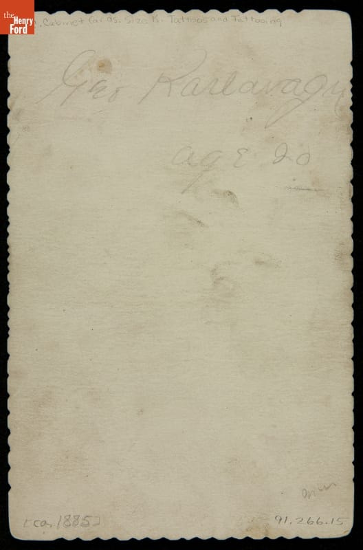 George Karlavagn, "The Champion Tattooed Boy," appears here circa 1885. After retiring from the Sells Brothers Circus as a sideshow attraction, Karlavagn operated a hotel in Philadelphia. In 1910, he worked alongside George H. Lawson to found the first racially-integrated baseball league, the United States League.