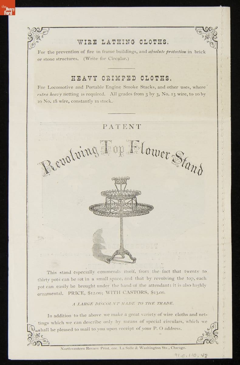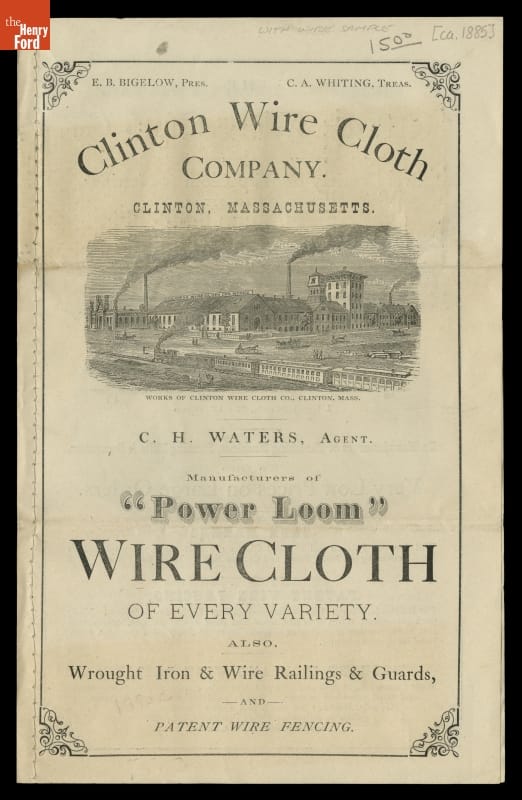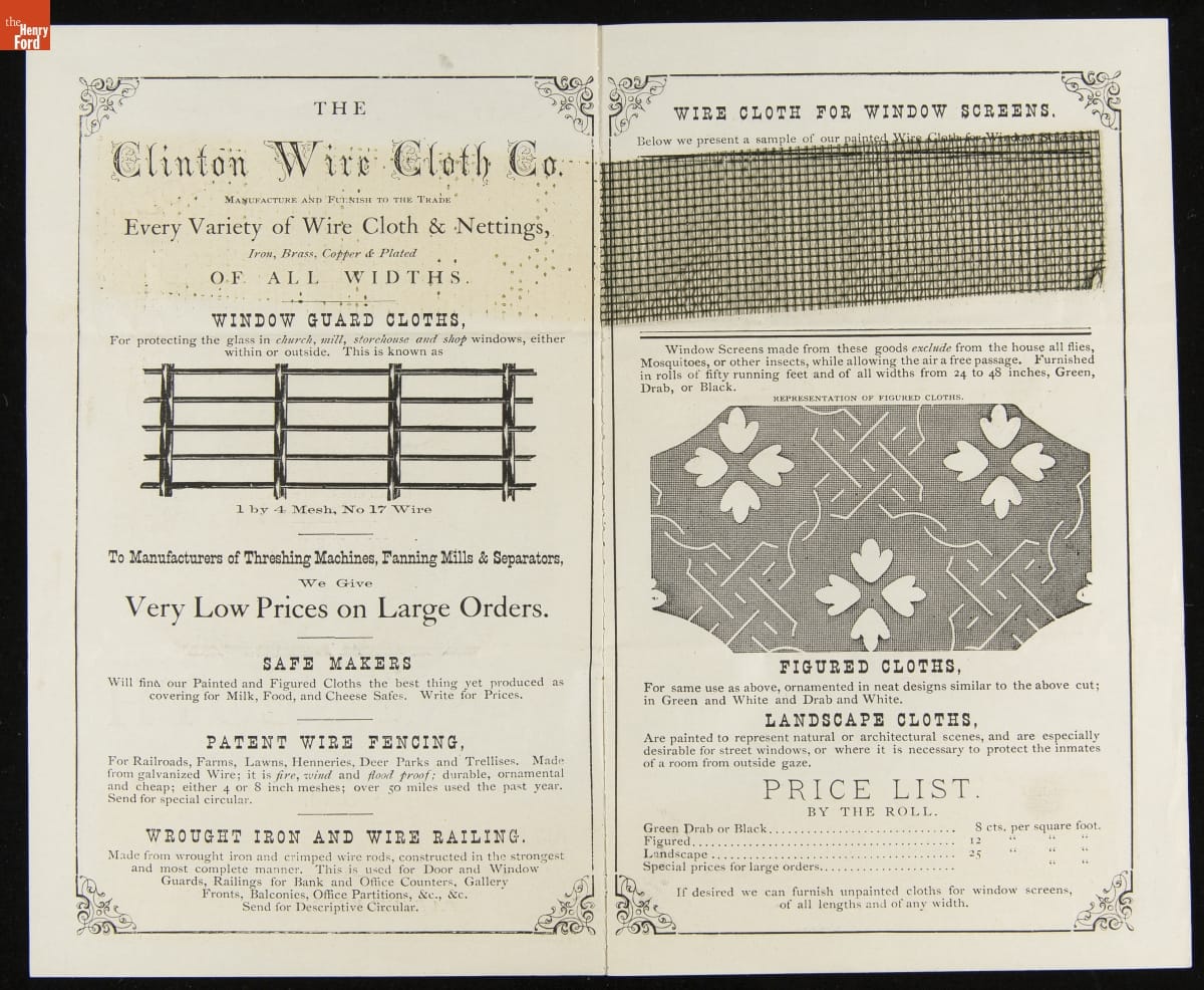 Clinton Wire Cloth Company Sales Catalog, "Power Loom Wire Cloth of Every Variety," circa 1885