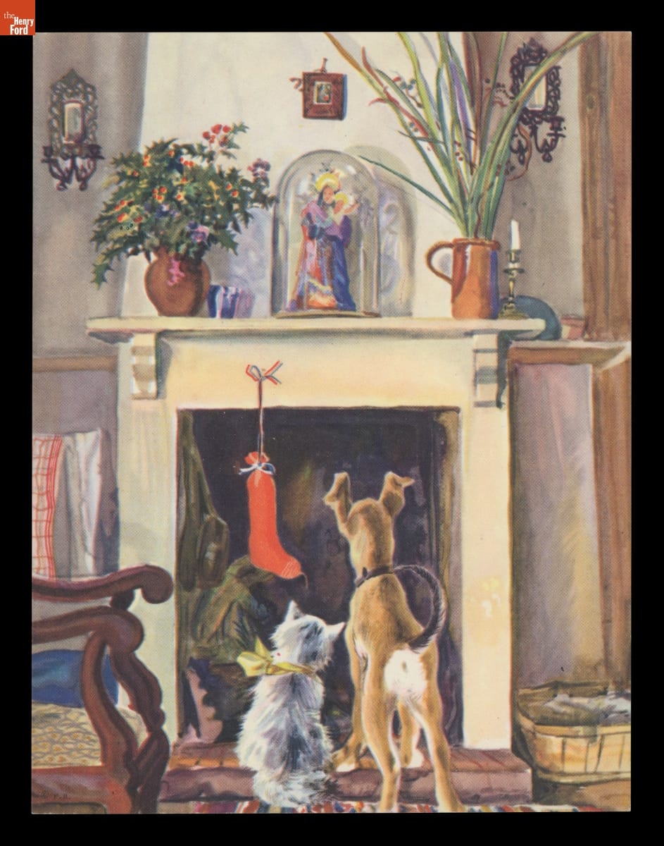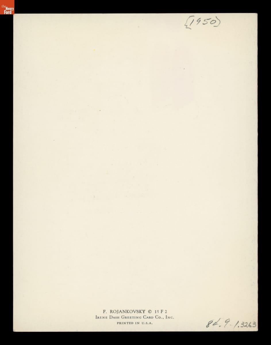 Russian-born artist and illustrator Feodor Rojankovsky (1891-1970) is best known as a children's book illustrator. His first children's book for a Western publisher came out in 1931 while living in Europe. He emigrated to the United States ten years later. Rojankovsky won the Caldecott Medal for the artist of the most distinguished children's book from 1956. He created this Christmas card design around 1950.