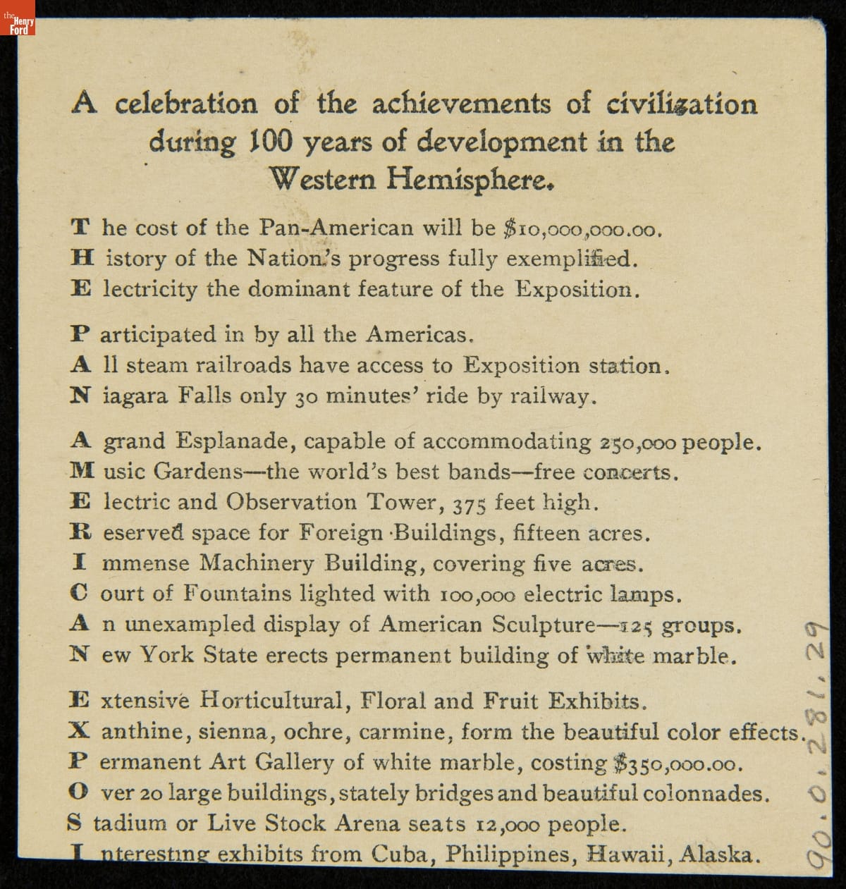Trade Card for the 1901 Pan-American Exposition, 1899