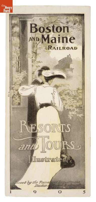 As the rail system became more extensive, railroad companies became major promoters of vacation travel. This brochure, Resorts and Tours Illustrated (1905), described vacation opportunities along the Boston and Maine Railroad line.