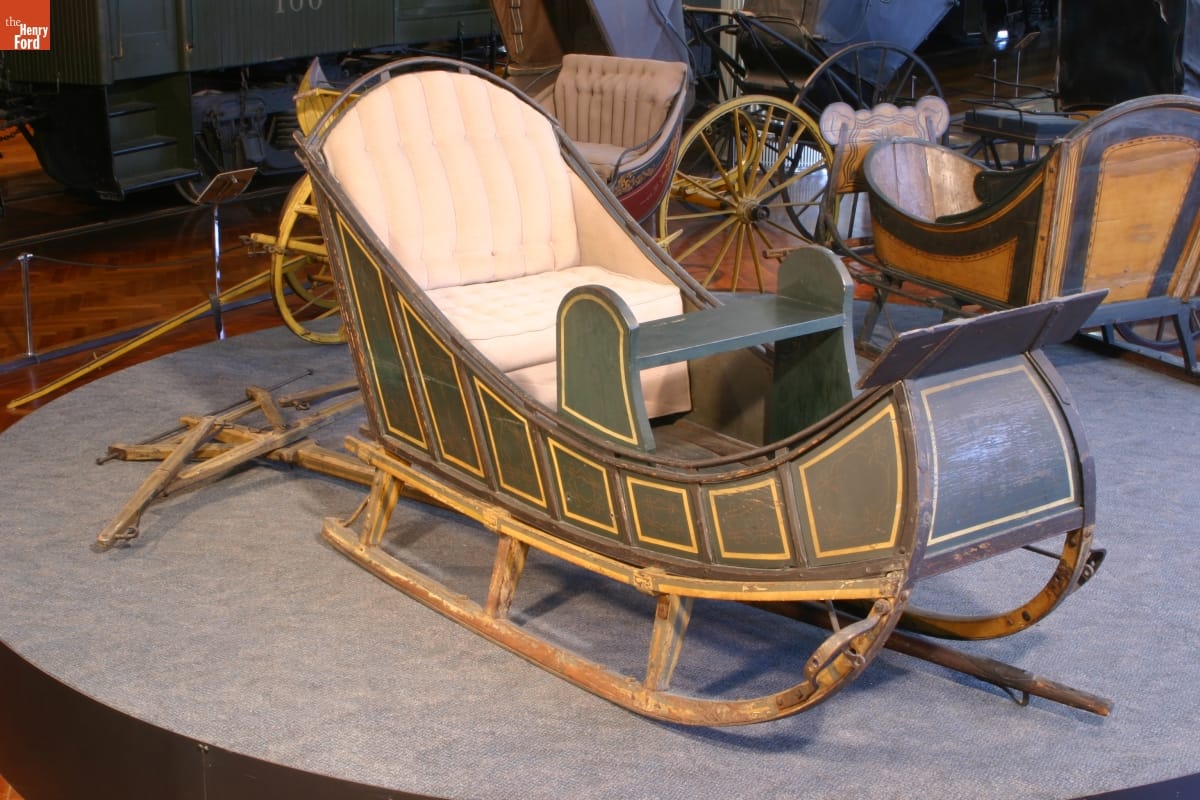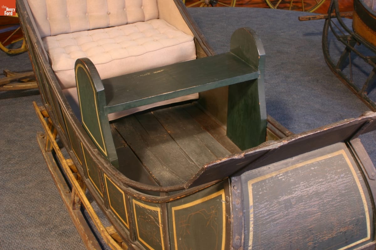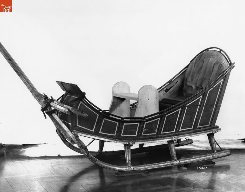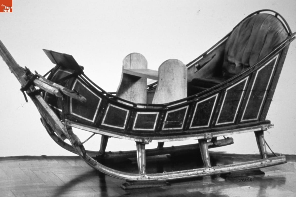 Given the poor condition of roads and the high cost of wheeled vehicles, travel in the 18th and early 19th centuries could be easier in winter. Ice and snow smoothed travel routes, and less expensive sleighs and sleds provided reliable horse-drawn transportation. In New England, a simple box-shaped sleigh like this one was referred to as a "pung."