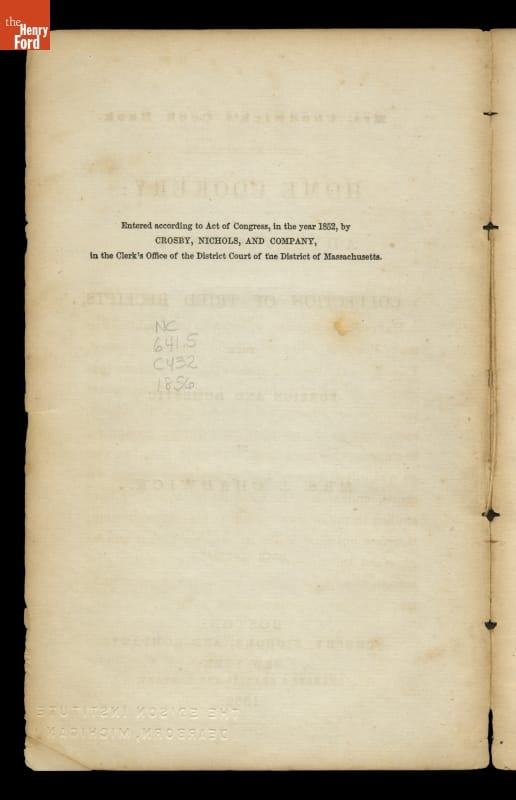 Home Cookery : A Collection of Tried Receipts, Both Foreign and Domestic, 1856
