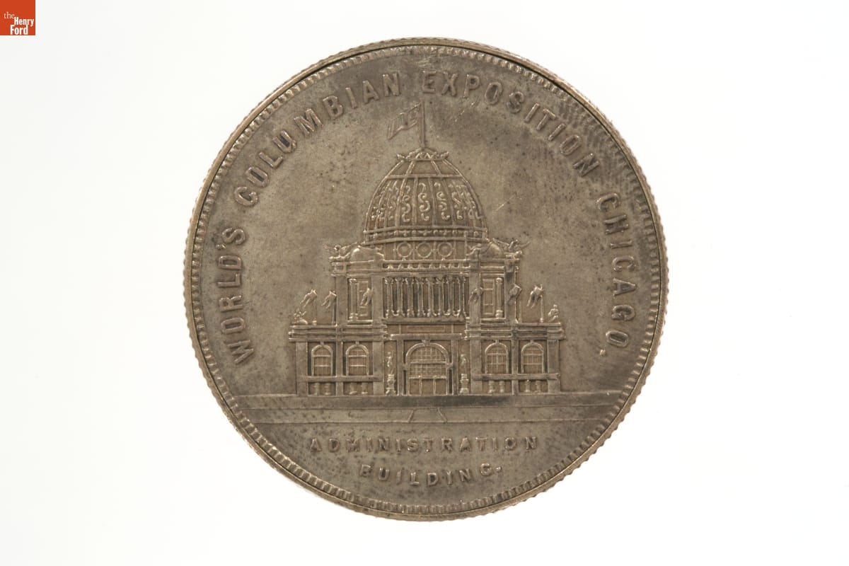 More than 25 million visitors attended the World's Columbian Exposition held in Chicago, Illinois, in 1893. The fair celebrated the 400th anniversary of Christopher Columbus's landing in America. Many fairgoers returned home with mementos, such as this souvenir medal depicting a portrait of Columbus and the exhibition's Administration Building.
