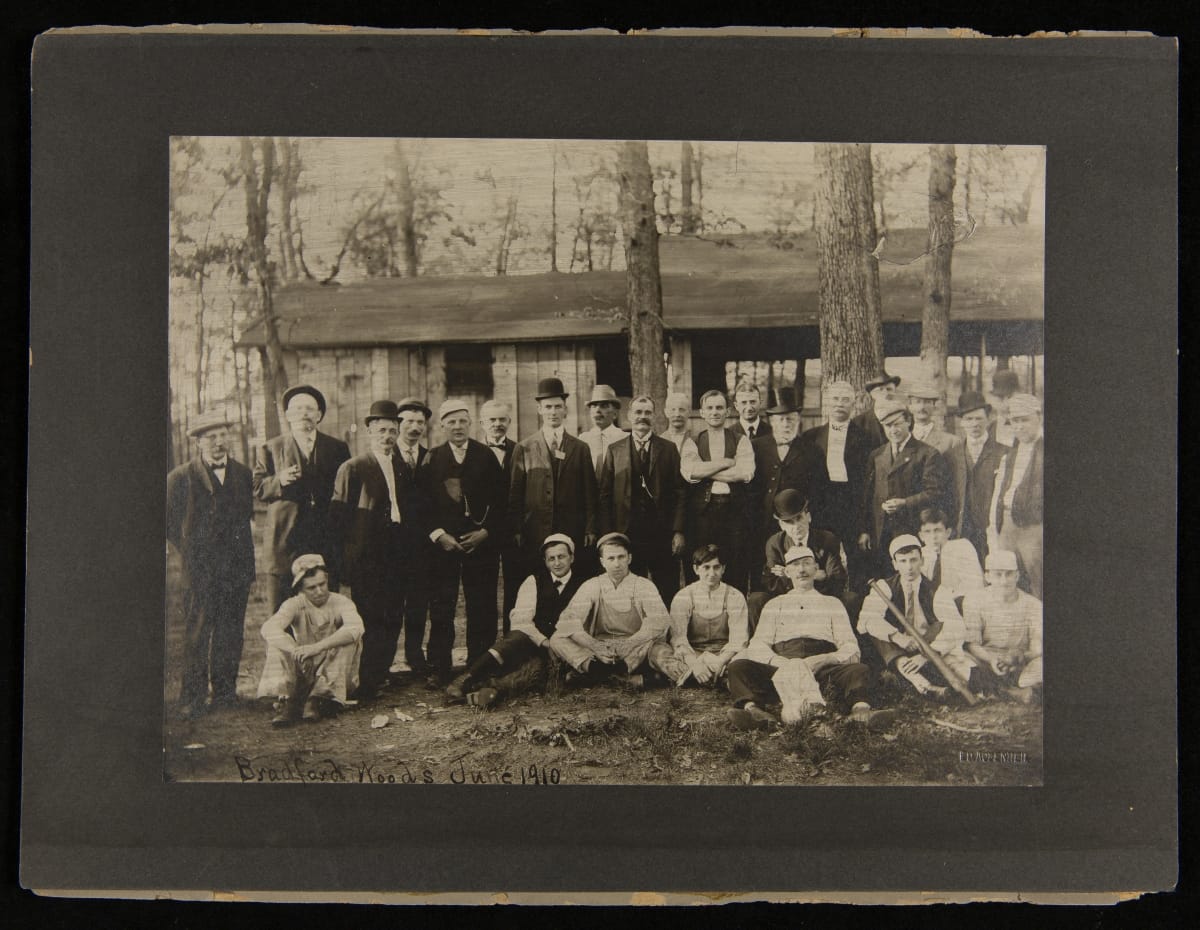 The H.J. Heinz company had humble beginnings with its founder producing horseradish out of his parent's home in 1869. With a rapidly expanding line of high-quality products and a flair for marketing, the Heinz brand quickly became a household name. This photograph shows a group of Heinz foremen at Bradford Woods, Pennsylvania.