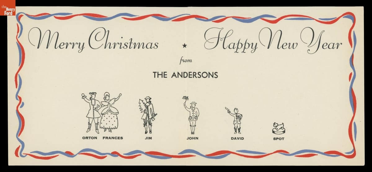 Colorful, commercially designed greeting cards were popular in early 20th-century America--especially during the holidays. Friends and neighbors commonly exchanged cards wishing one another a Merry Christmas or Happy New Year. During World War II, wartime issues affected card design, with patriotic motifs and somber greetings being regular features.