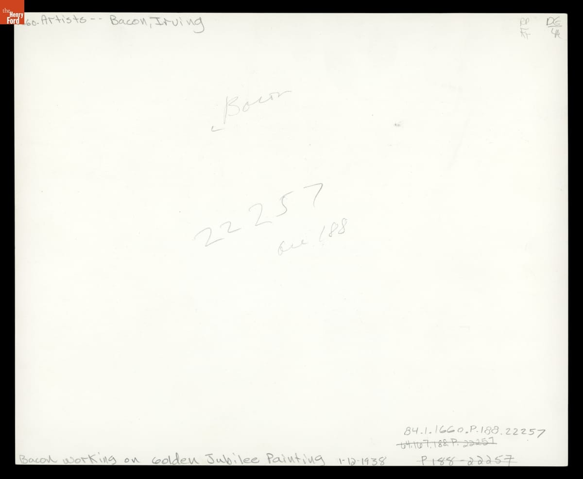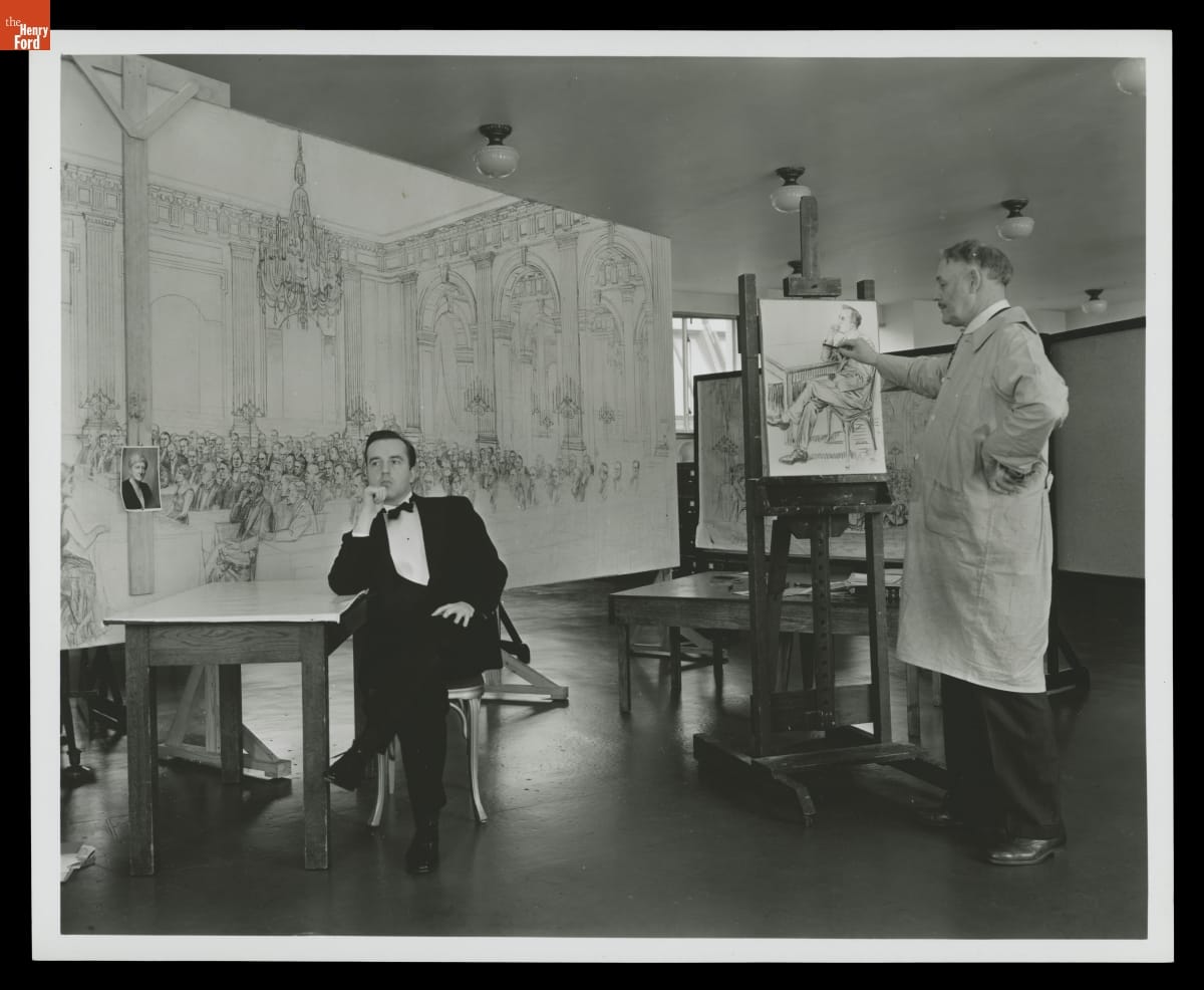 Irving Bacon Works on the Painting of Light's Golden Jubilee, January 17, 1938