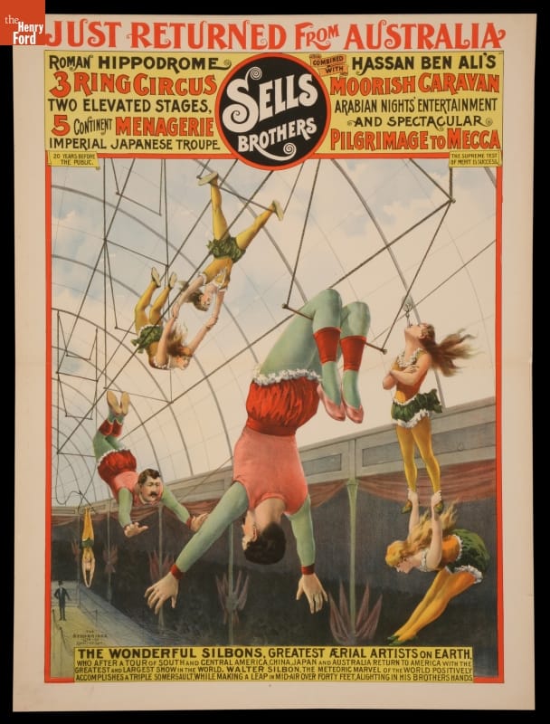 Circus Poster, Sells Brothers Circus Presents "The Wonderful Silbons, Greatest Aerial Artists on Earth," circa 1892