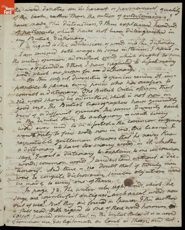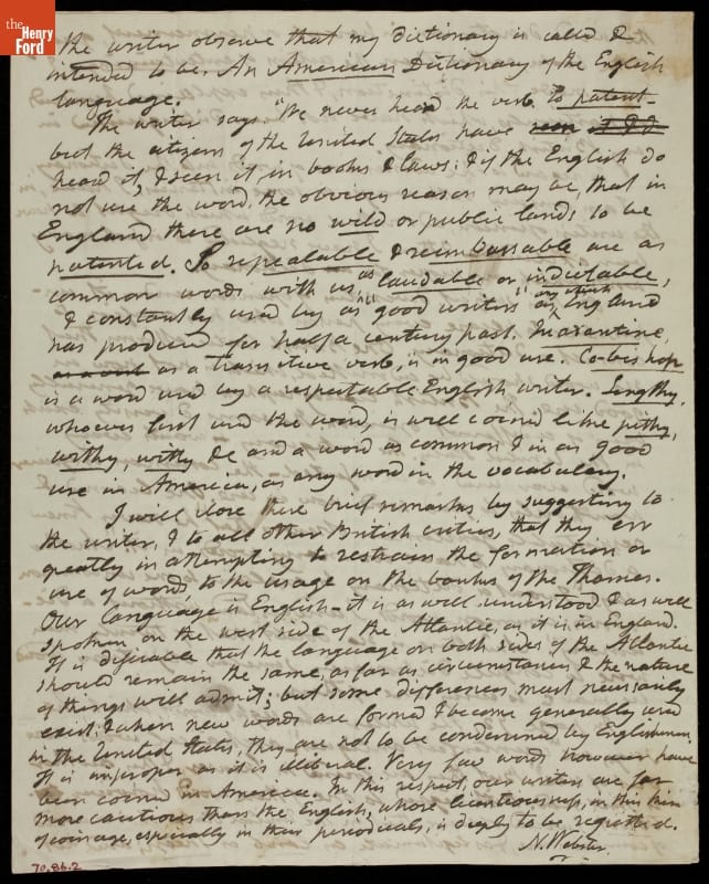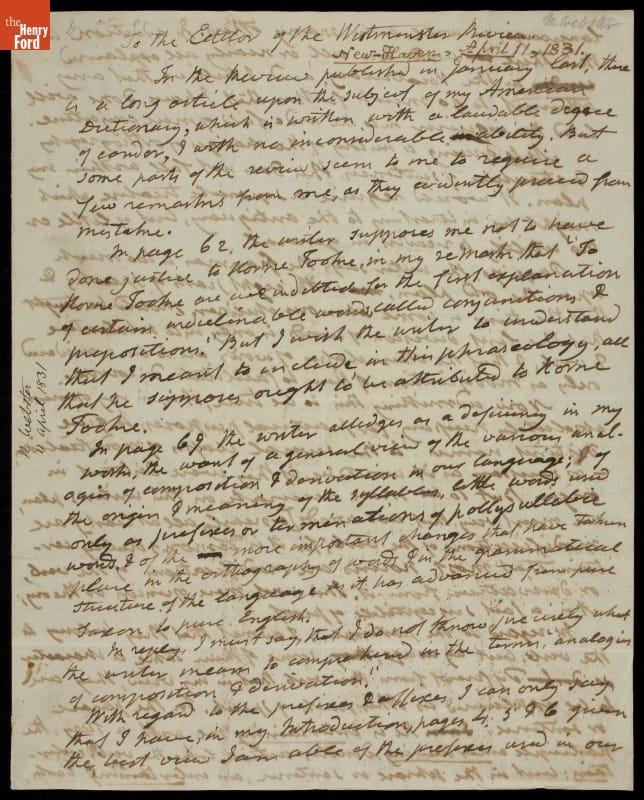 Letter from Noah Webster to the Editor of the Westminster Review, 1831