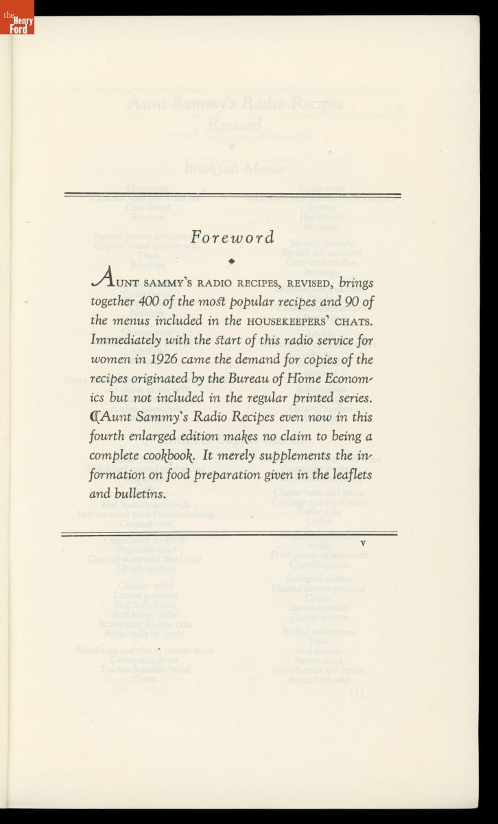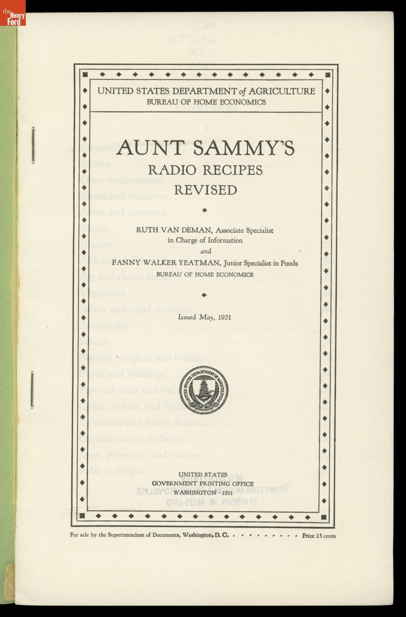 "Aunt Sammy's Radio Recipes Revised," 1931