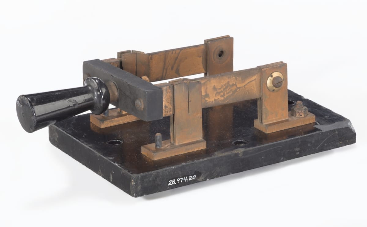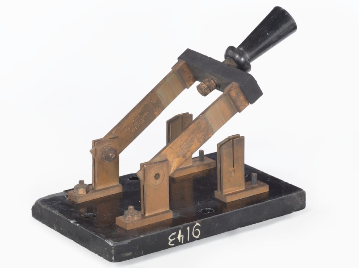 Switches open or close an electrical circuit to turn things off or on. In the late 1800s and early 1900s, knife switches were commonly found in engine or generating rooms, connected to factory motors, or mounted on a building's power and lighting switchboard. Operators pushed the hinged, metal blades into the switch's jaws to send electricity to where it was needed.