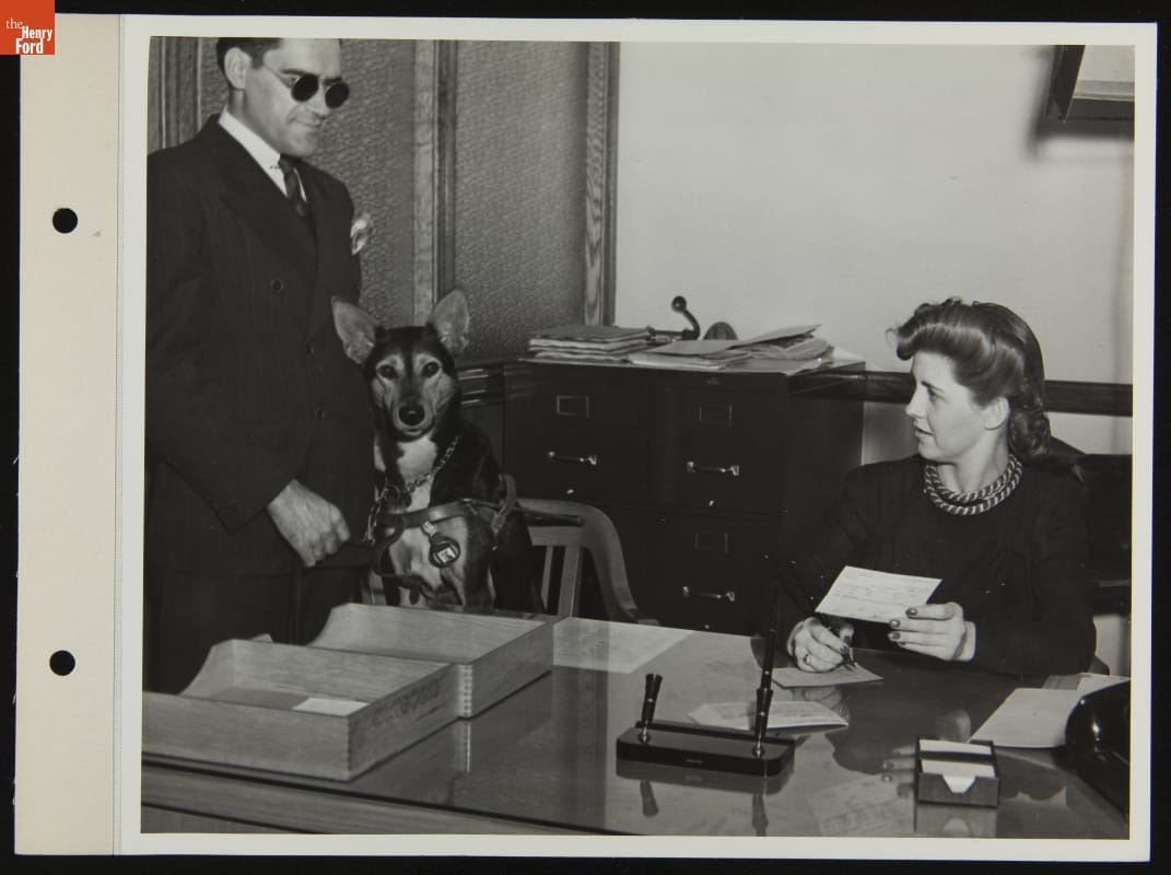Henry Ford believed in providing equal employment opportunities to people with disabilities -- a practice he began in the early years of his company. During World War II, Ford employed thousands of workers with disabilities. In October 1942, Ford Motor Company photographed Sylvester Rypkowski and his service dog, Blackie, as they became members of the Rouge plant's workforce.