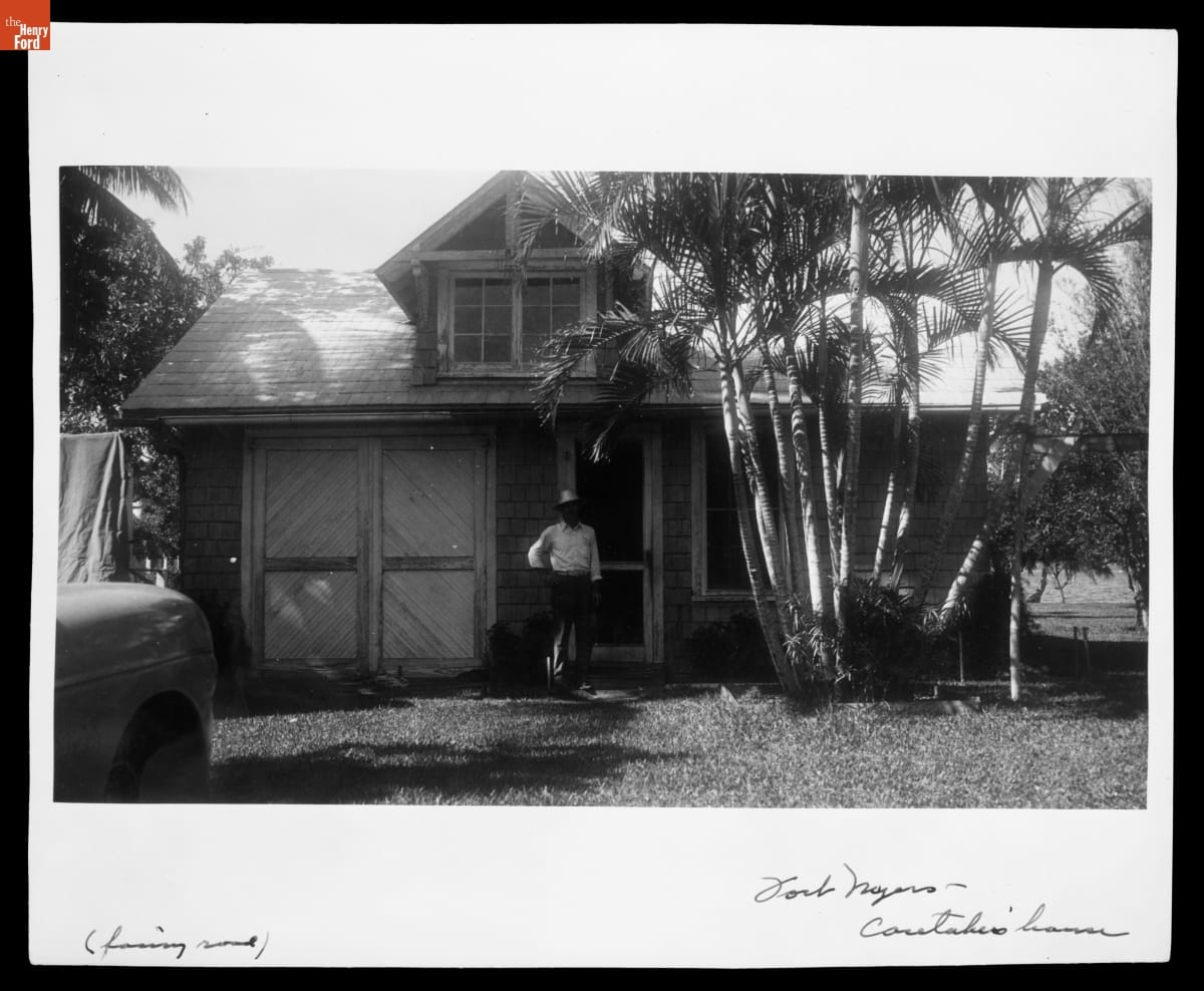 In 1916, Henry and Clara Ford purchased "The Mangoes," a winter home in Fort Myers, Florida, located next to the wintertime retreat of Thomas and Mina Edison. This image shows the caretaker's house on the grounds. The Fords rarely visited "The Mangoes" after Mr. Edison's death in 1931, and they sold the estate in 1945.